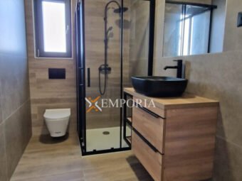 The construction was done with thermal brick blocks. The facade has 10 cm thick Styrofoam thermal insulation. The floor coverings are tiles. Windows are made of PVC material with three-layer glass, roller shutters and mosquito nets. The living room and bedrooms are air conditioned. The entire apartment has electric underfloor heating. The entrance door to the apartment is burglar-resistant and fire-resistant.