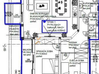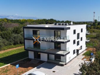 An excellent apartment for sale in a new building in Privlaka. This is an apartment on the ground floor. The layout of the rooms consists of a hallway, two bedrooms, a bathroom, a toilet, a pantry and a kitchen with a dining room and a living room. The net usable area of the apartment is 79,42 m2. In addition, the apartment also includes one parking space and a garden of 45 m2.