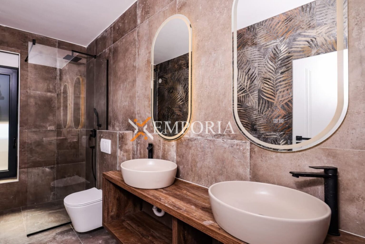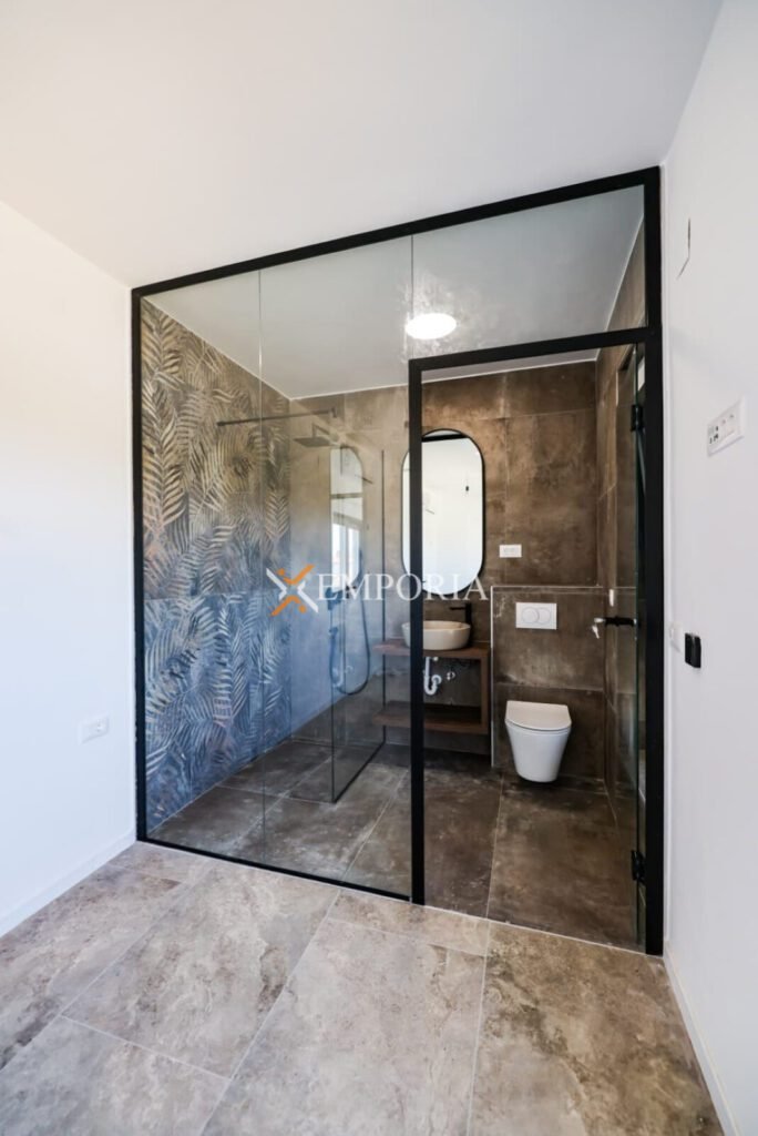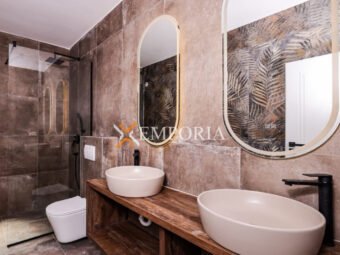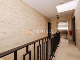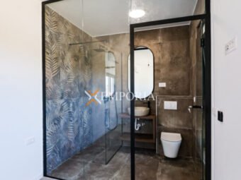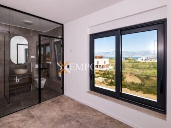 Construction of the building with brick thermoblock and thermal insulation of the facade 10 cm Styrofoam. The floor coverings are tiles. The windows are aluminum with three-layer glass, electric blinds and mosquito nets. There is an air conditioner in each bedroom and in the living room. In addition, electric underfloor heating in the bathroom. Furthermore, the entrance door of the apartment is burglar-proof and fire-proof.