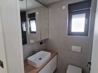 The floor coverings are tiles. The windows are made of PVC material with three-layer glass, electric shutters and mosquito nets. Air conditioners in the living room and bedrooms. In addition, electric underfloor heating in the bathrooms. Furthermore, the entrance door of the apartment is burglar-proof and fire-proof.