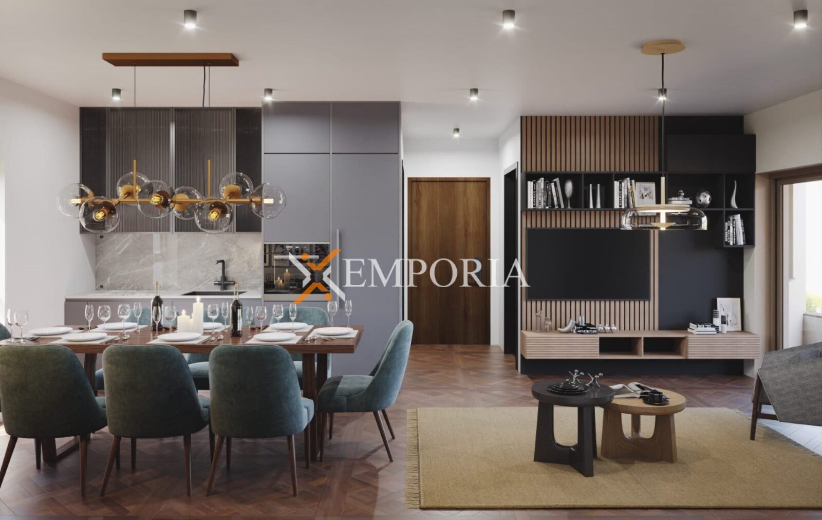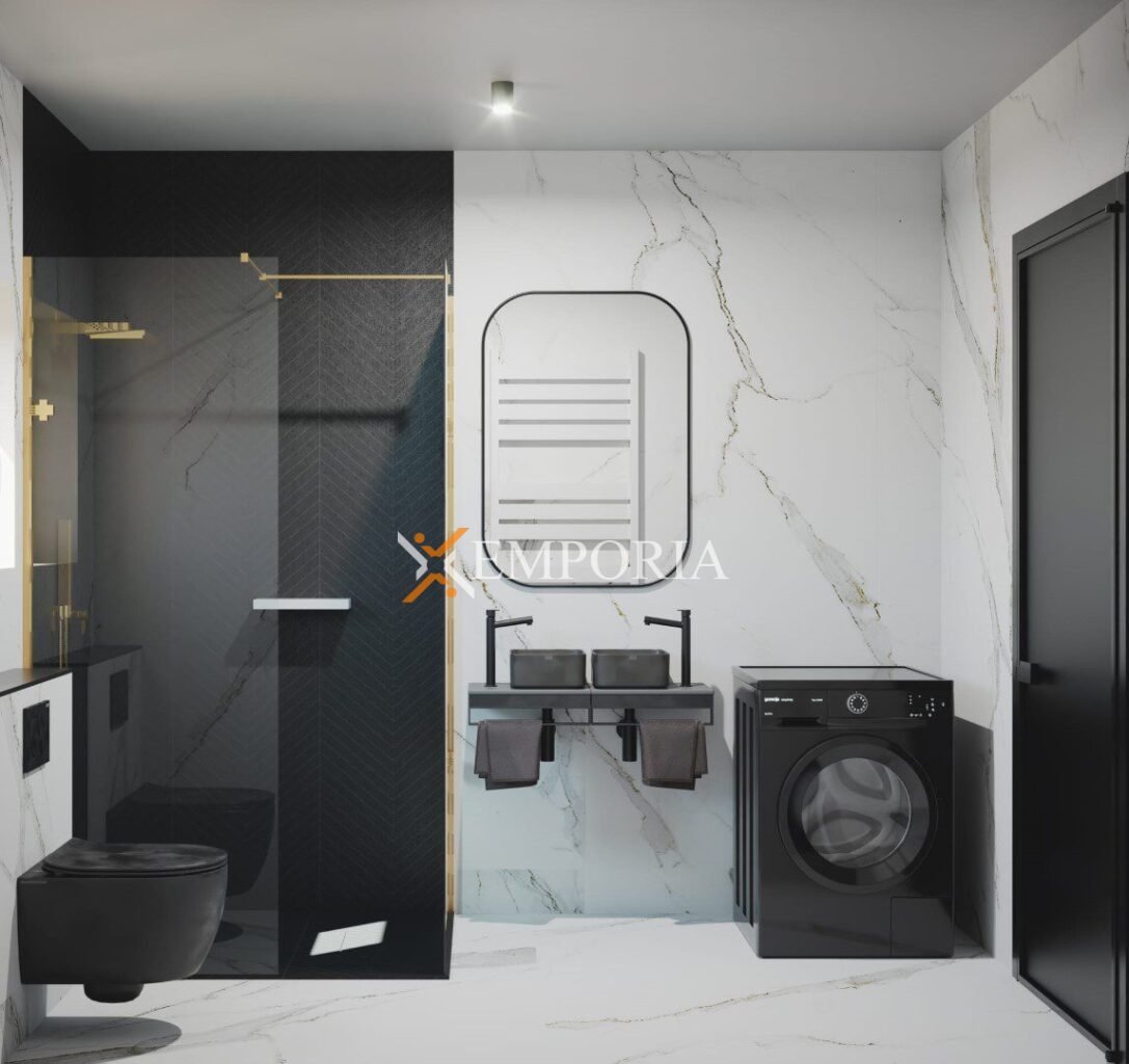 Construction of the building is done with thermal brick blocks. Facade is thermally insulated with 10 cm thick styrofoam. Floor coverings are tiles. Windows are made of PVC material with three-layer glass, mosquito nets and aluminum blinds. Electric floor heating in the bathrooms. Two air conditioners will be installed. Additonally, the apartment has a chimney as well. Furthermore, the entrance door is burglar-proof and fire-proof.