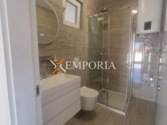 Construction is done with thermal brick blocks. Thermal insulation of the facade is 10 cm Styrofoam. The floor coverings are laminate and tiles. The windows are made of PVC material with blinds and mosquito nets. Air conditioners in the living room and bedrooms. In addition, electric underfloor heating in the bathroom. Furthermore, the entrance door of the apartment is burglar-proof and fire-proof.