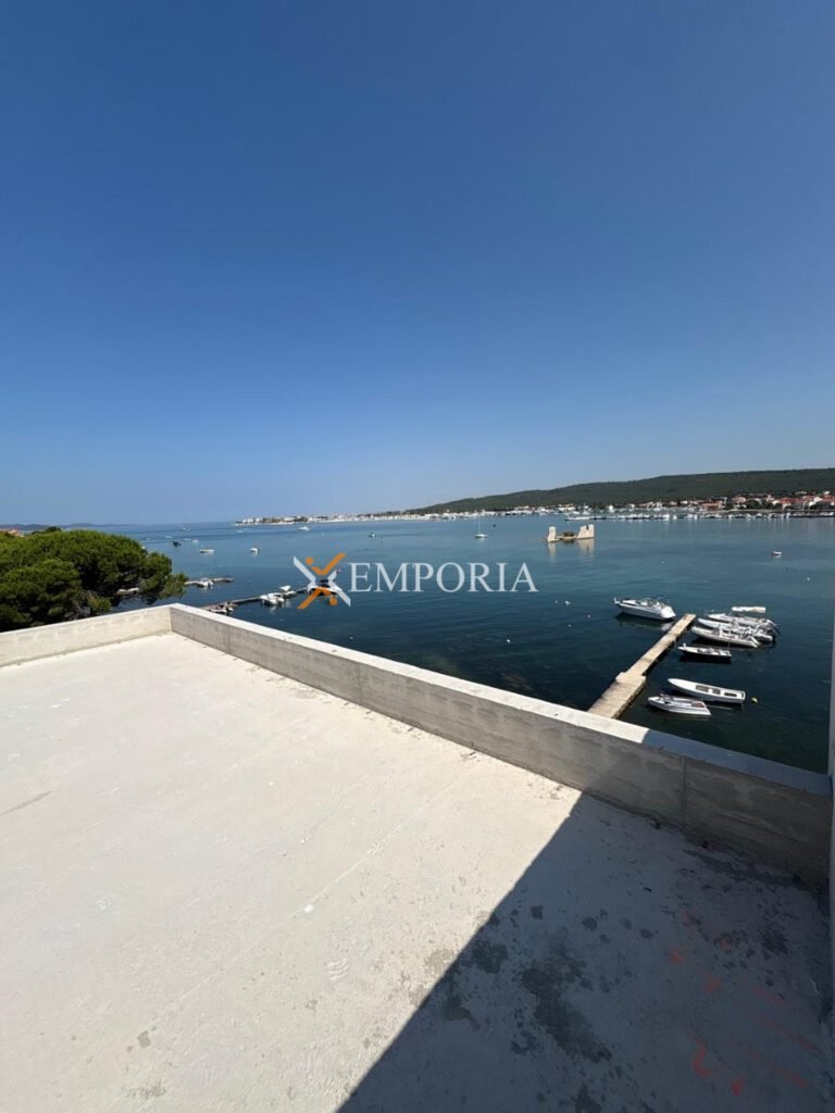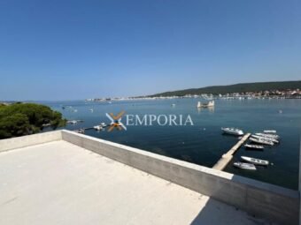 A luxury apartment on the 1st floor in a modern building at a prime location – first row to the sea in Sukošan is for sale. The apartment offers a great view of the sea.