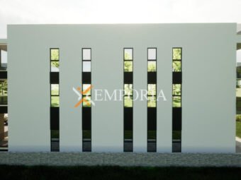 The construction of the building is carried out with concrete walls. The facade thermal insulation is made of 10 cm Styrofoam.