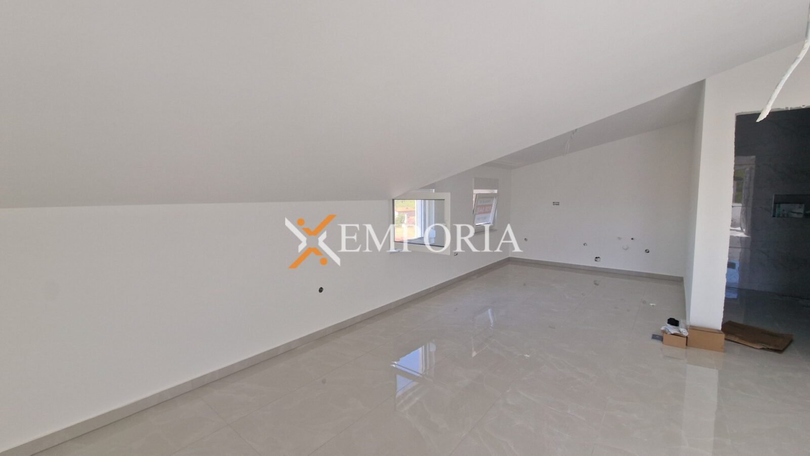 Construction is done with thermal brick blocks. Thermal insulation of the facade is 10 cm Styrofoam. The floor coverings are laminate and tiles. The windows are made of PVC material with blinds and mosquito nets. Air conditioners in the living room and bedrooms. In addition, electric underfloor heating in the bathroom. Furthermore, the entrance door of the apartment is burglar-proof and fire-proof.
