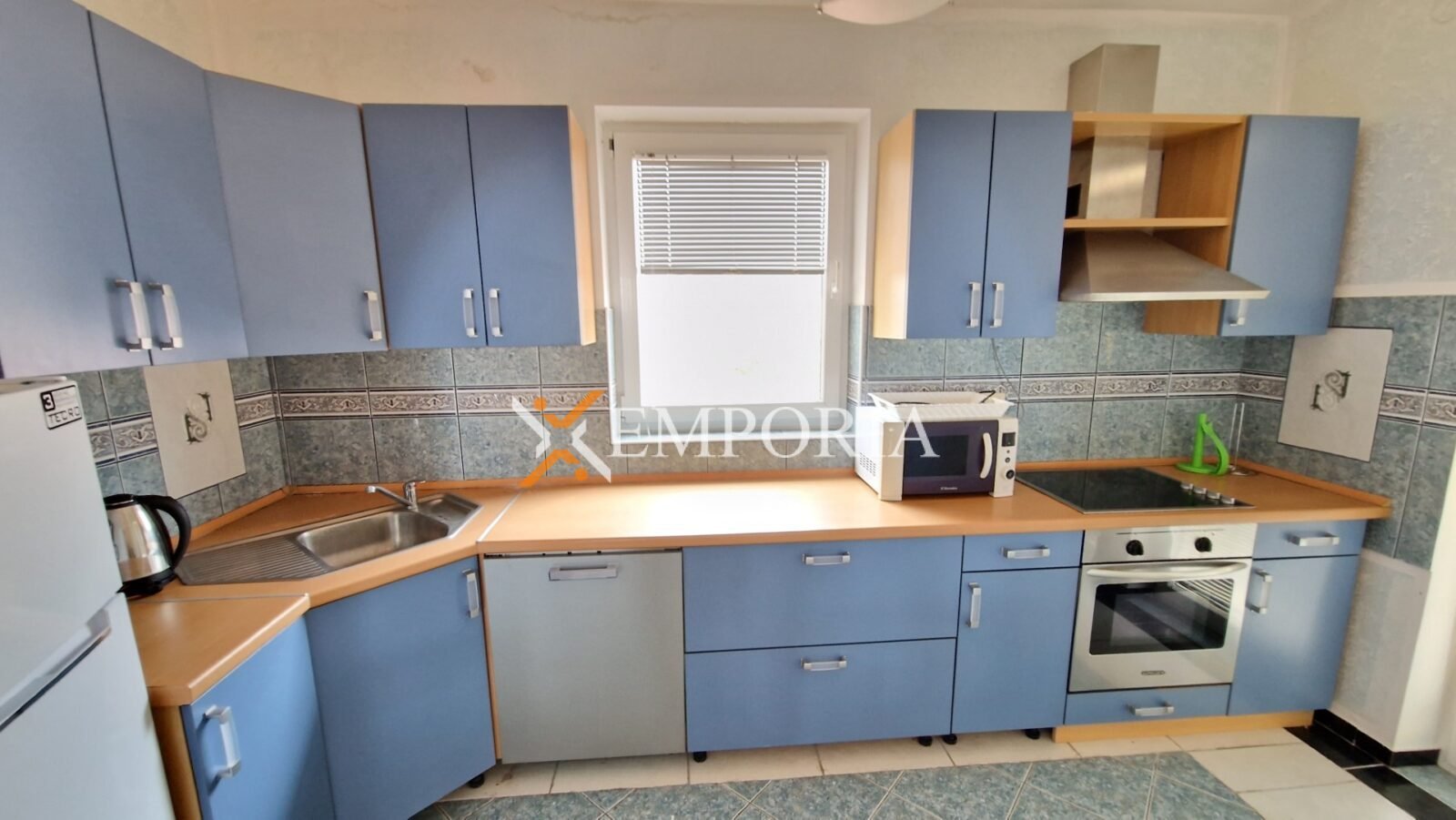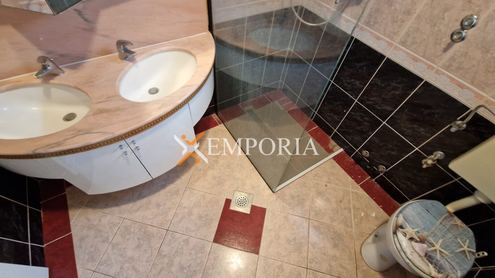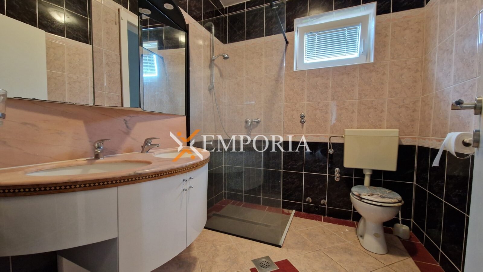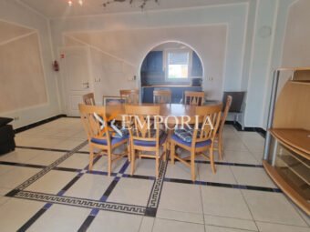 The building is constructed with brick, and the apartment is fitted with PVC windows and shutters. The floors are covered with ceramic tiles, and one air conditioning unit is installed for cooling. The apartment is sold furnished, which makes it easier to move in or rent out.