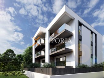 The bathrooms are fitted with electric underfloor heating, and there are three air conditioning units in the living room and both bedrooms. The building is constructed using thermal brick blocks, with PVC joinery, triple-glazed windows, insect screens, and electric shutters. The façade has 10 cm of Styrofoam insulation, and the floors are tiled. Entrance doors are burglar- and fire-resistant, and the roof is new, flat, and made of concrete. The completion of construction is expected in 2026.