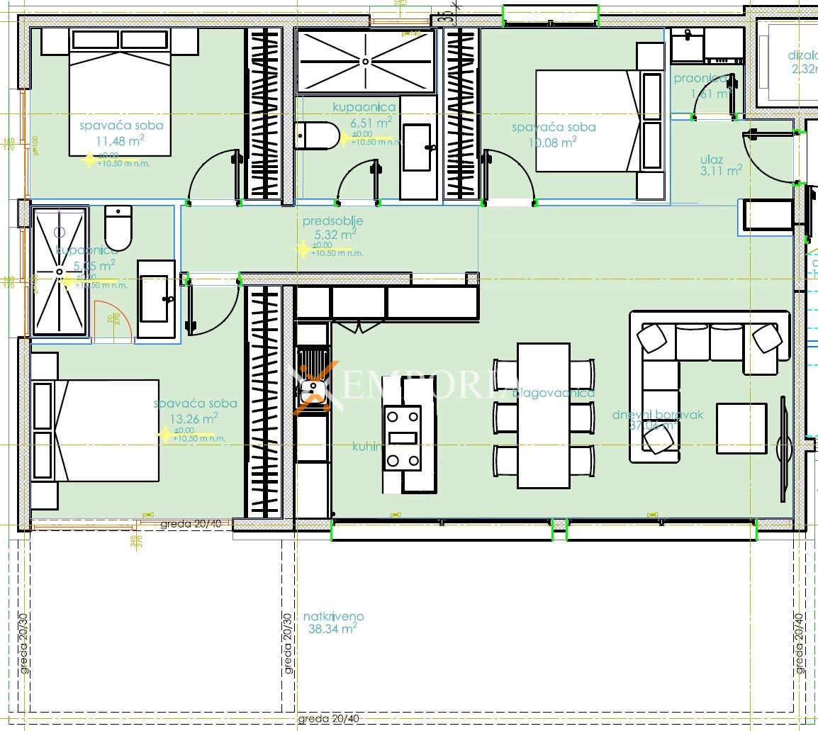A ground-floor apartment in the second row from the sea is for sale in Sveti Filip i Jakov, located only 60 m from the sea. The property offers a spacious and functional layout, suitable for family use or as a seaside retreat.