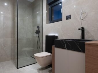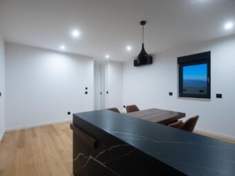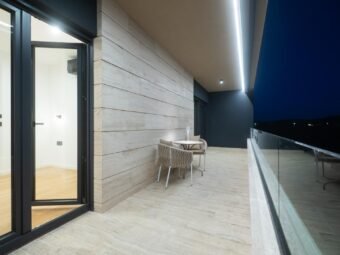 The building was constructed using brick thermal blocks and a façade with 10 cm Styrofoam insulation. PVC windows with triple glazing, electric shutters, and mosquito nets provide additional thermal and sound insulation. The entrance door is burglar-proof and fire-resistant, while the flat concrete roof highlights the contemporary architectural style.