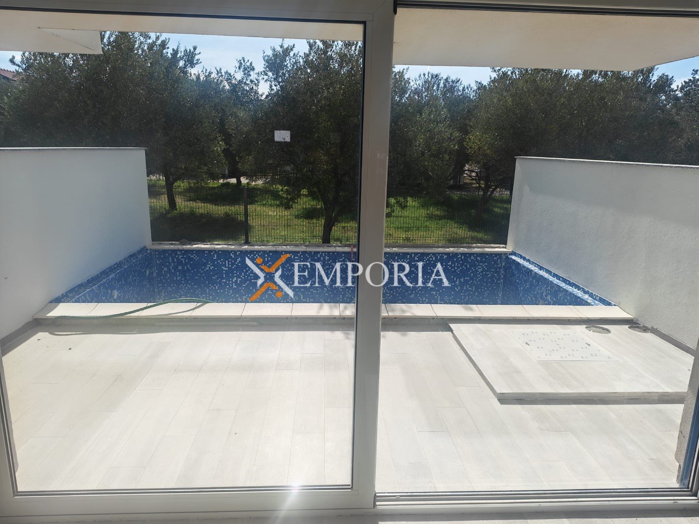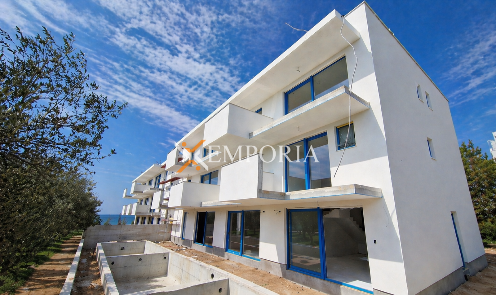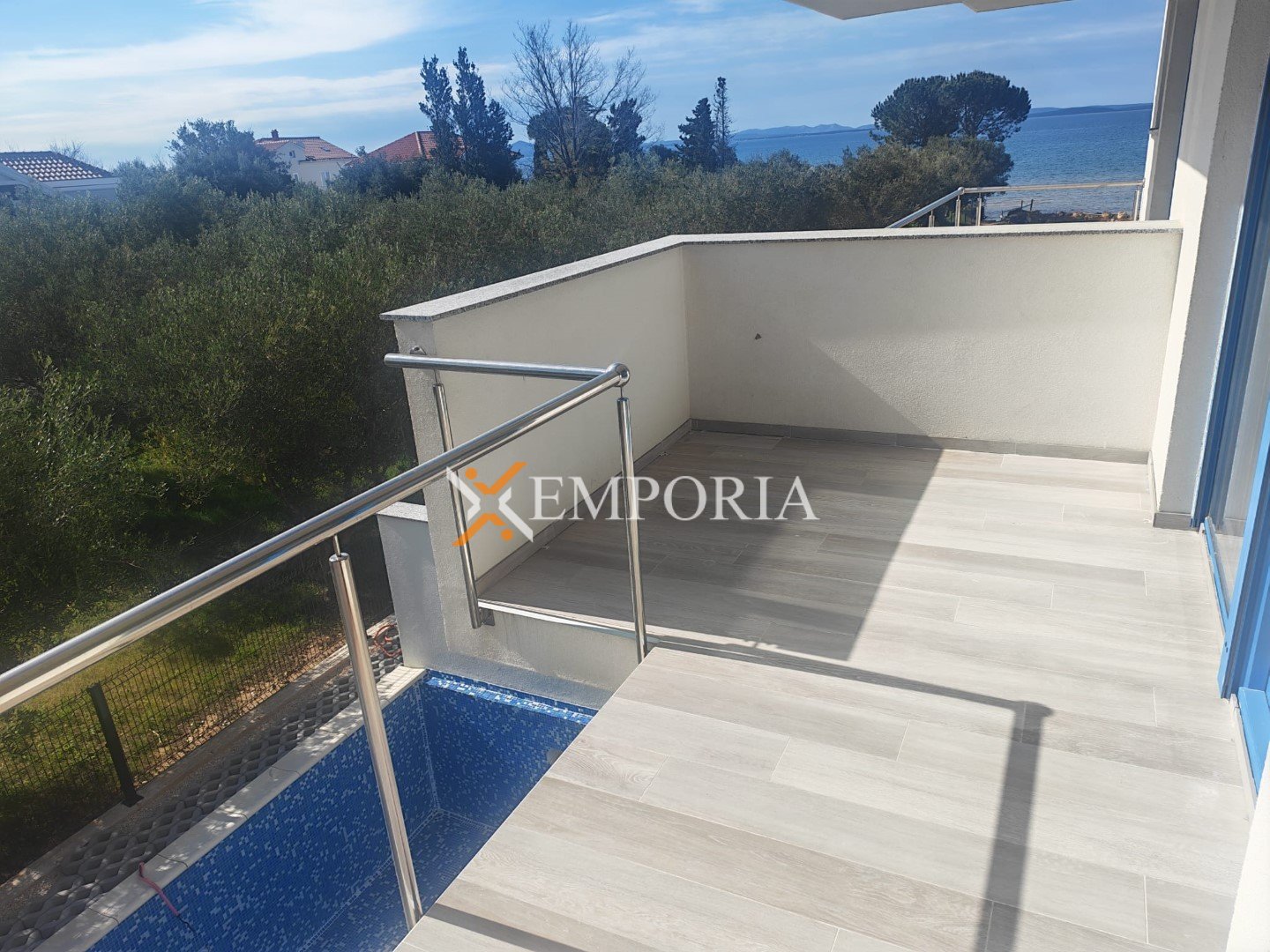 For sale is a triplex apartment in a new building in Privlaka, located in the second row from the sea, only 65 m from the coast. The property stands out with an excellent sea view, a private pool, and modern features, making it ideal for luxury living or investment.