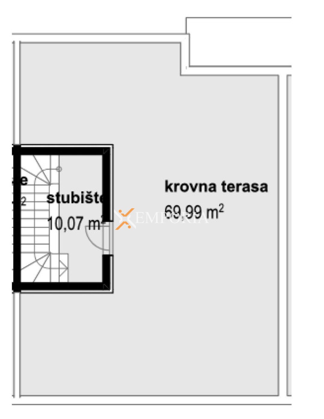 Internal stairs lead to a rooftop terrace of 69,18 m².