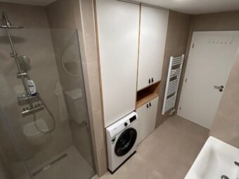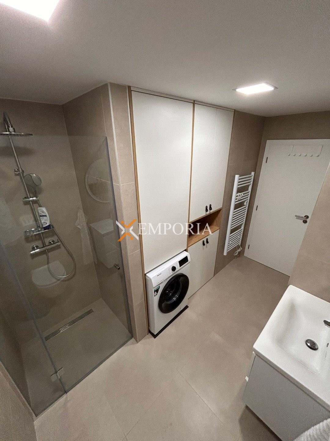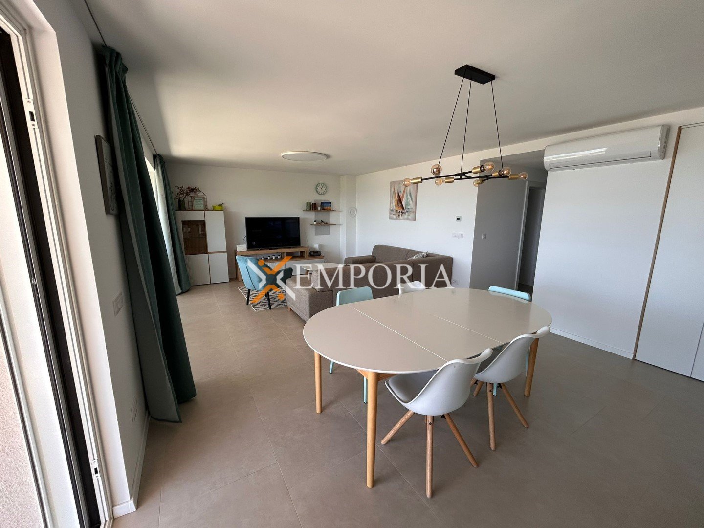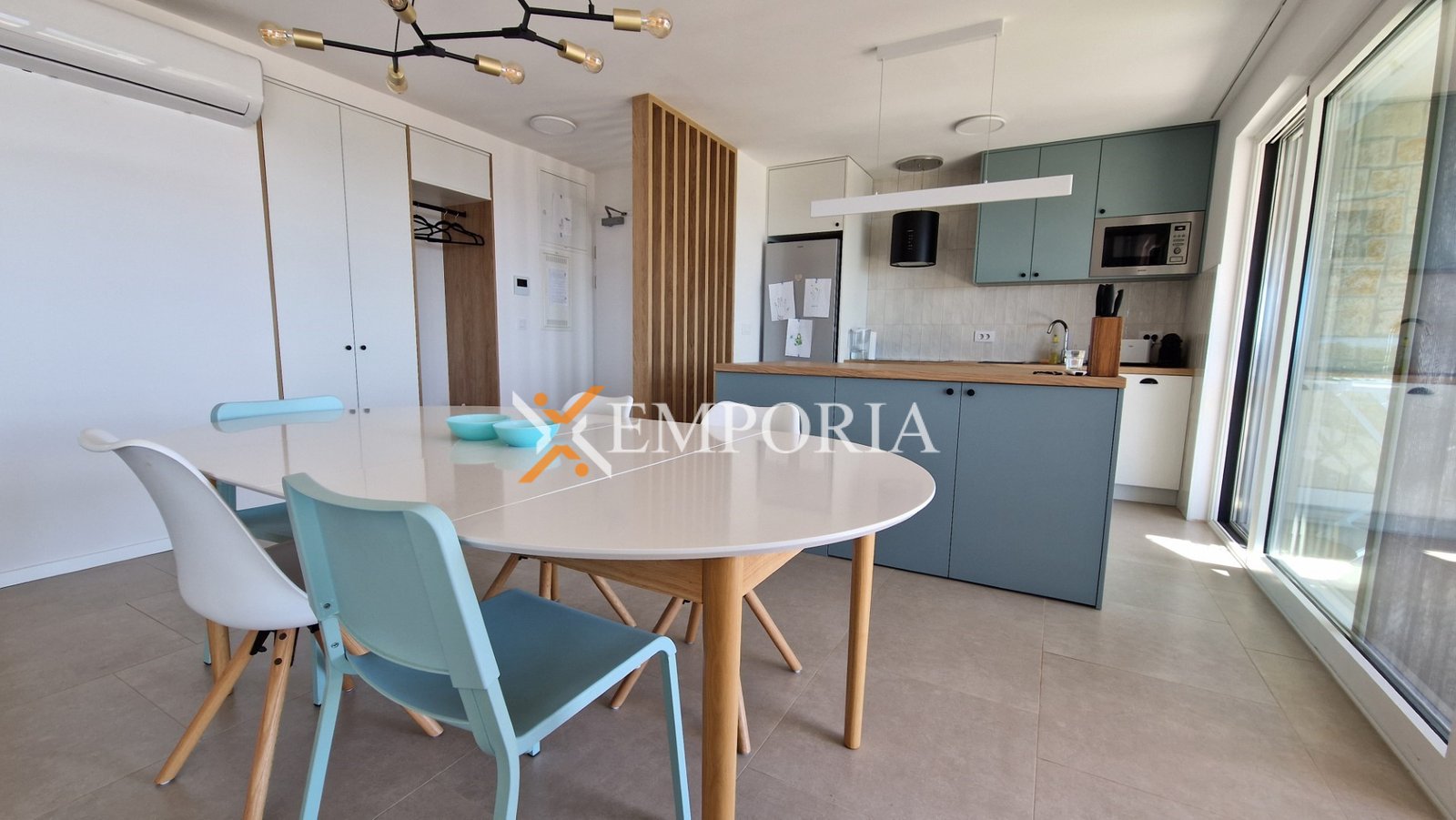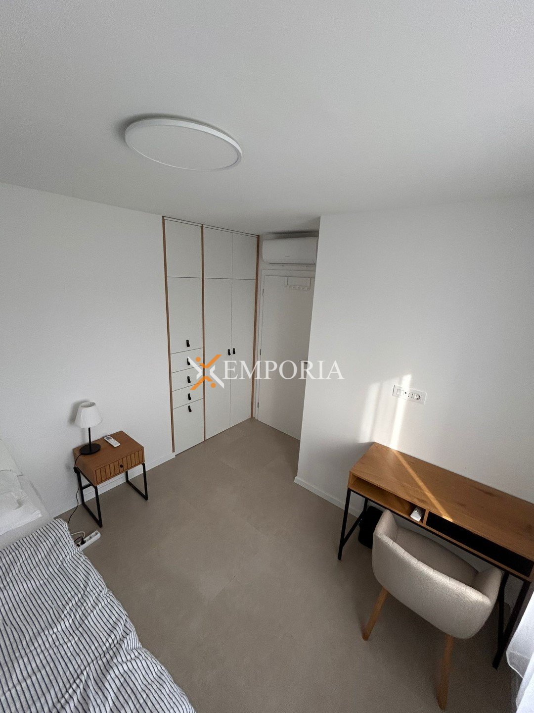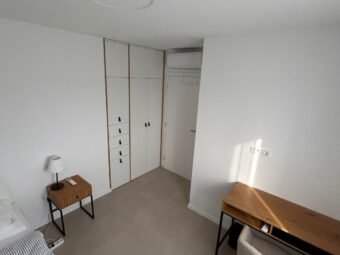 Electric underfloor heating is installed in all rooms except the bedrooms. Four air conditioning units are installed in the living room and bedrooms. The building is constructed with brick thermal blocks.