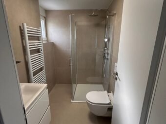 A combination of PVC and aluminum windows with shutters, electric shutters, mosquito screens, and triple glazing is installed. The facade is insulated with 10 cm of styrofoam. Flooring consists of tiles.