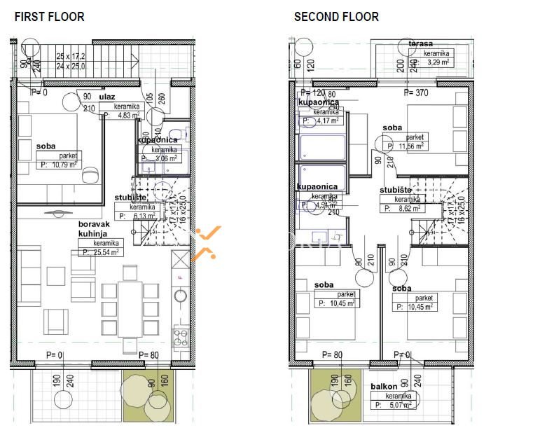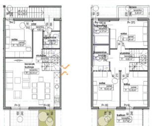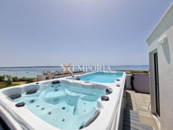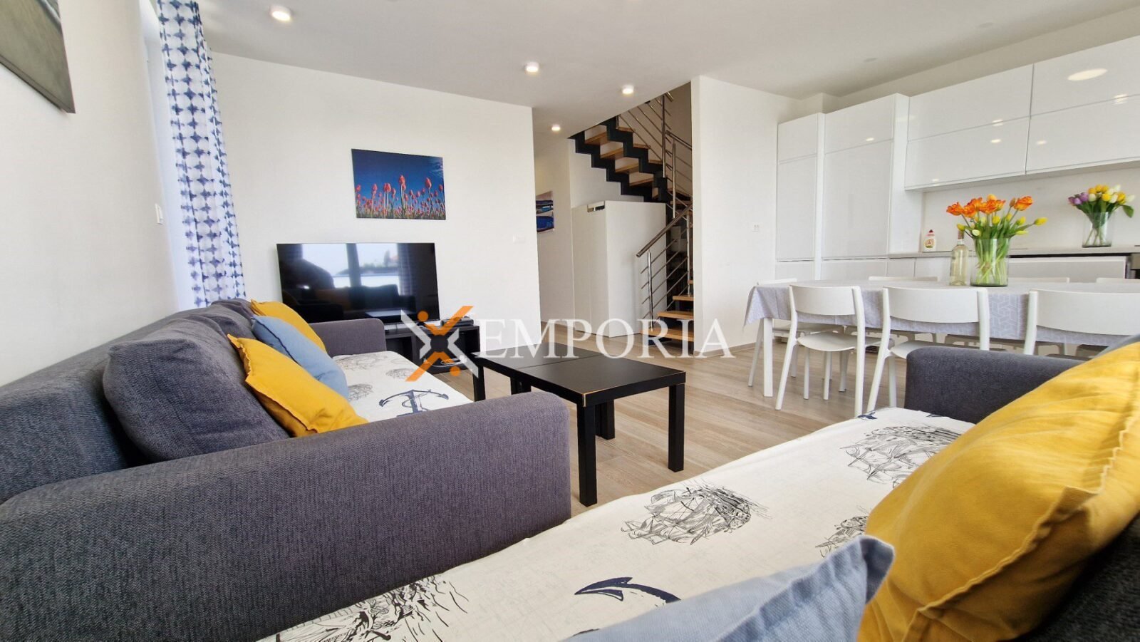 Multi-storey apartment with sea view for sale in Privlaka. It consists of ground floor, 1st floor, 2nd floor and roof terrace. This type of apartment can be compared to a terraced house.