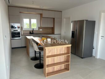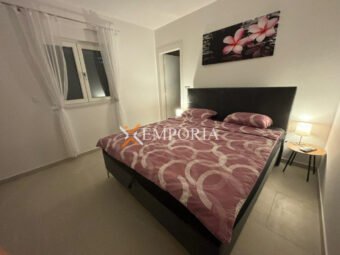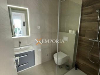 Construction with brick thermal blocks. Facade thermal insulation 10 cm styrofoam. Floor coverings are tiles. PVC windows with electric shutters, mosquito nets and three-layer glass. Air conditioning in the living room and one bedroom. Electric floor heating in the bathroom. The front door of the apartment is burglar-proof and fire-resistant.