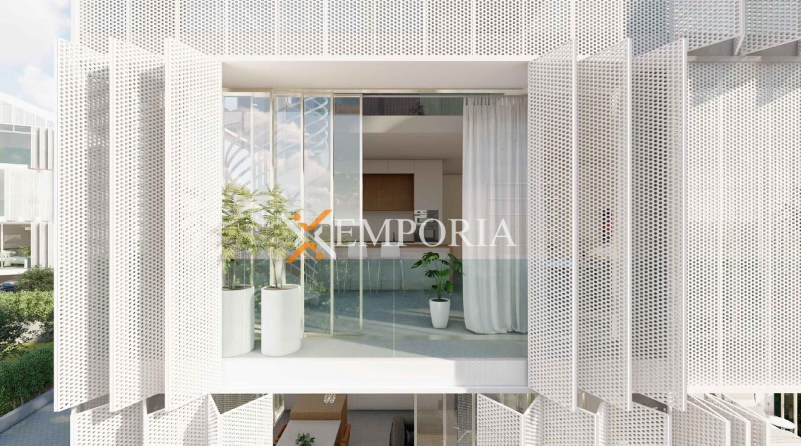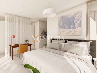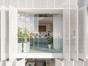 Construction with concrete wall and masonry thermal block. The floor coverings are tiles and parquet. Styrofoam with a thickness of 8 cm is attached to the facade for thermal insulation. The windows are aluminum with mosquito nets and shutters. Water-based underfloor heating via heat pumps is installed throughout the apartment. The premises are air-conditioned via ceiling units, also via heat pumps. In addition, the front door of the apartment is burglar-proof and fireproof.