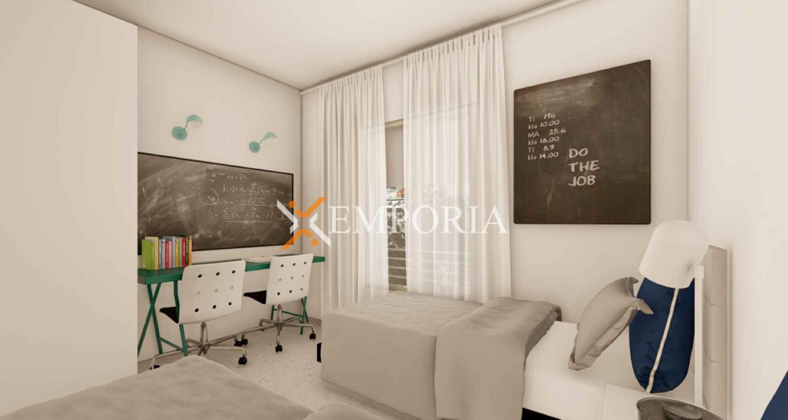 Apartment for sale on the first floor in Diklo, Zadar. It is a modern new building, the move-in is planned for the end of 2026. The location of the property is excellent, 650 m from the sea and the beach, in a quiet and green area. The apartment has partial sea views.