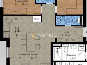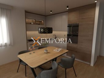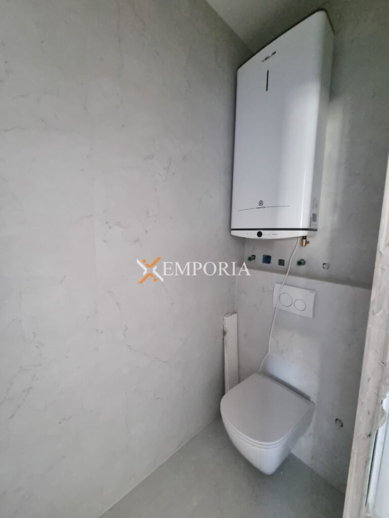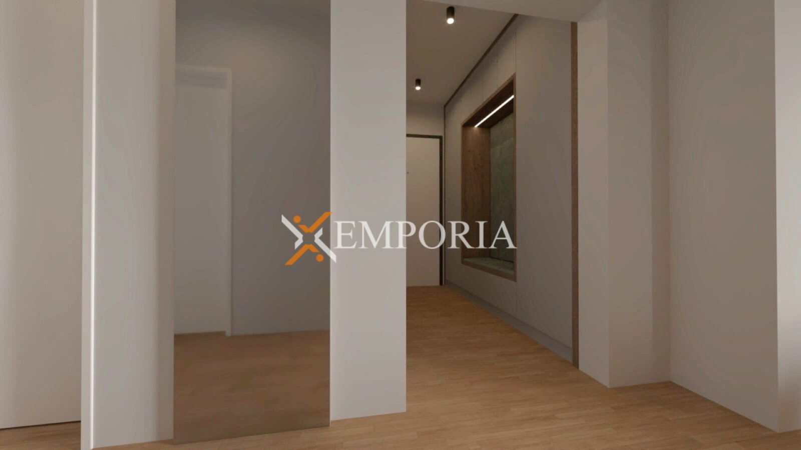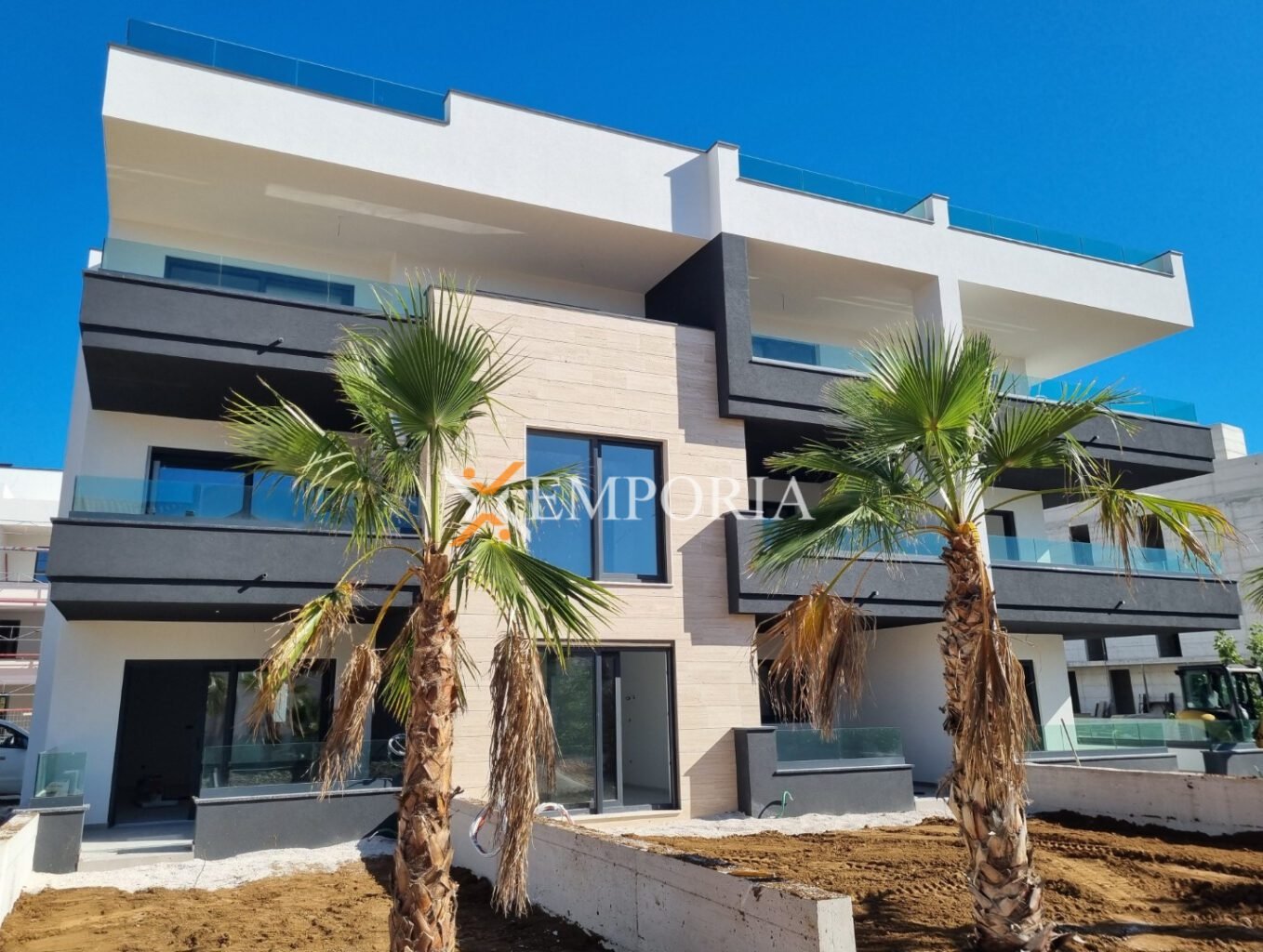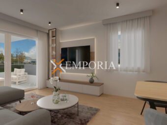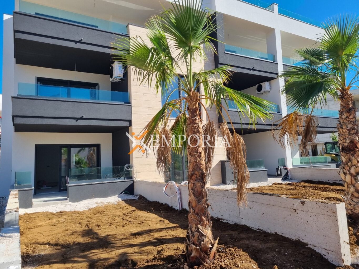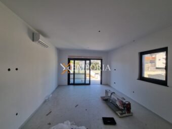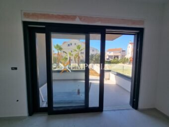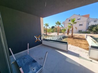 A new apartment is for sale in Zadar, located in the Crvene kuće area. The apartment is situated on the ground floor of a modern residential building, which is expected to be ready for occupancy by the beginning of 2026. The building has a lift. Nearby, there will be a park with trees, walking paths, and a children’s playground.