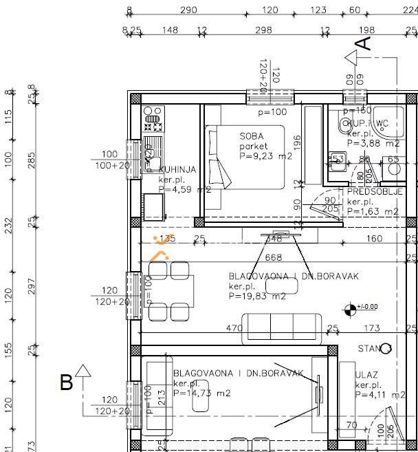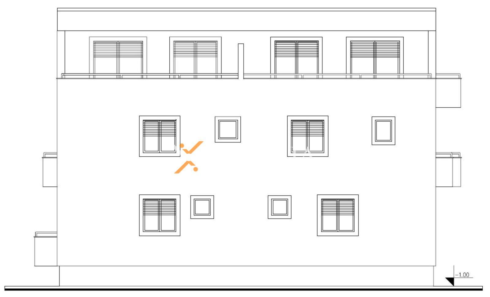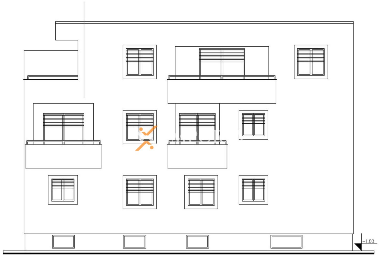 The apartment is equipped with underfloor electric heating throughout and has two air conditioning units – one in the living room and one in the bedroom. The windows are PVC with triple glazing, mosquito nets, and electric shutters. The floors are finished with a combination of tiles and parquet. The entrance door is burglar- and fire-resistant. The building is constructed using brick thermal blocks and has 10 cm thick styrofoam insulation. It is connected to the sewage system and features a new flat concrete roof. Completion of construction is planned for 2026.