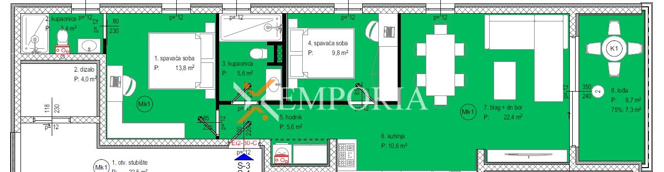 The area Crvene kuće is a quiet Zadar neighborhood located in the north of the city where predominantly family houses and a number of new residential buildings predominate. It is away from the crowds and noise, but on the other hand to the city center it takes only 10 minutes of drive. It takes just as much to get to the nearest beach. That is why this part of the city is desirable to solve the housing issue.