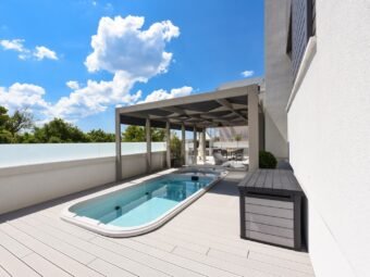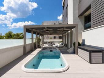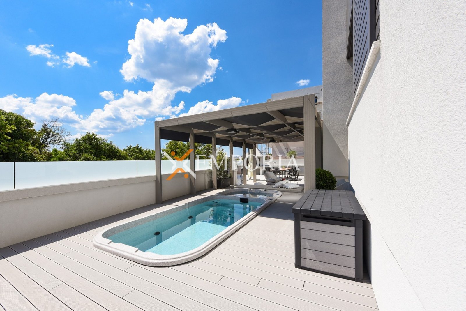 This modernly decorated apartment is located in the attractive Borik district of Zadar, only 470 m from the sea and 2,2 km from the city center. Situated on the ground floor of a quality building, the apartment offers a functional layout, a private garden of 50,15 m², a pool and a jacuzzi covered by a pergola, which creates an ideal space for relaxation and spending time outdoors.