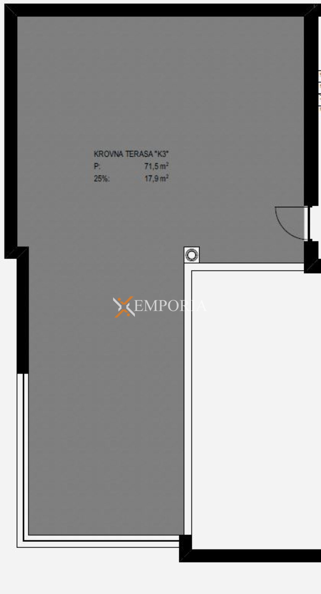 The layout consists of an entrance hall, two bedrooms, a bathroom, a separate toilet, a kitchen with dining area and living room in an open space concept, and a loggia, with a total net area of 65,76 m2. From the staircase, there is access to a private rooftop terrace of 71,49 m2, offering additional outdoor space for relaxation and social gatherings.