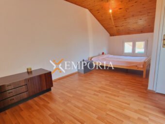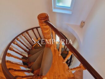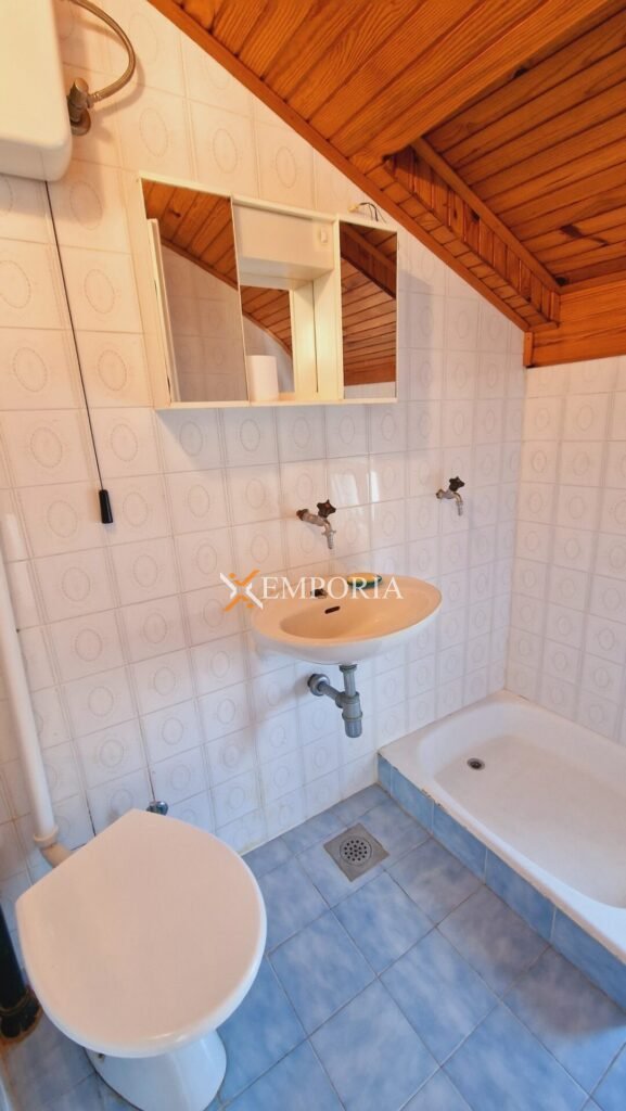 The house was built of bricks and reinforced concrete. The facade has 8 cm thick Styrofoam thermal insulation. The facade and gutters were renovated in 2022. The floor coverings are laminate and tiles. The windows are made of PVC material with roller shutters and mosquito nets. The roller shutters are made of plasticized aluminum. The house has a fireplace. There is an outdoor grill on the second-floor terrace.