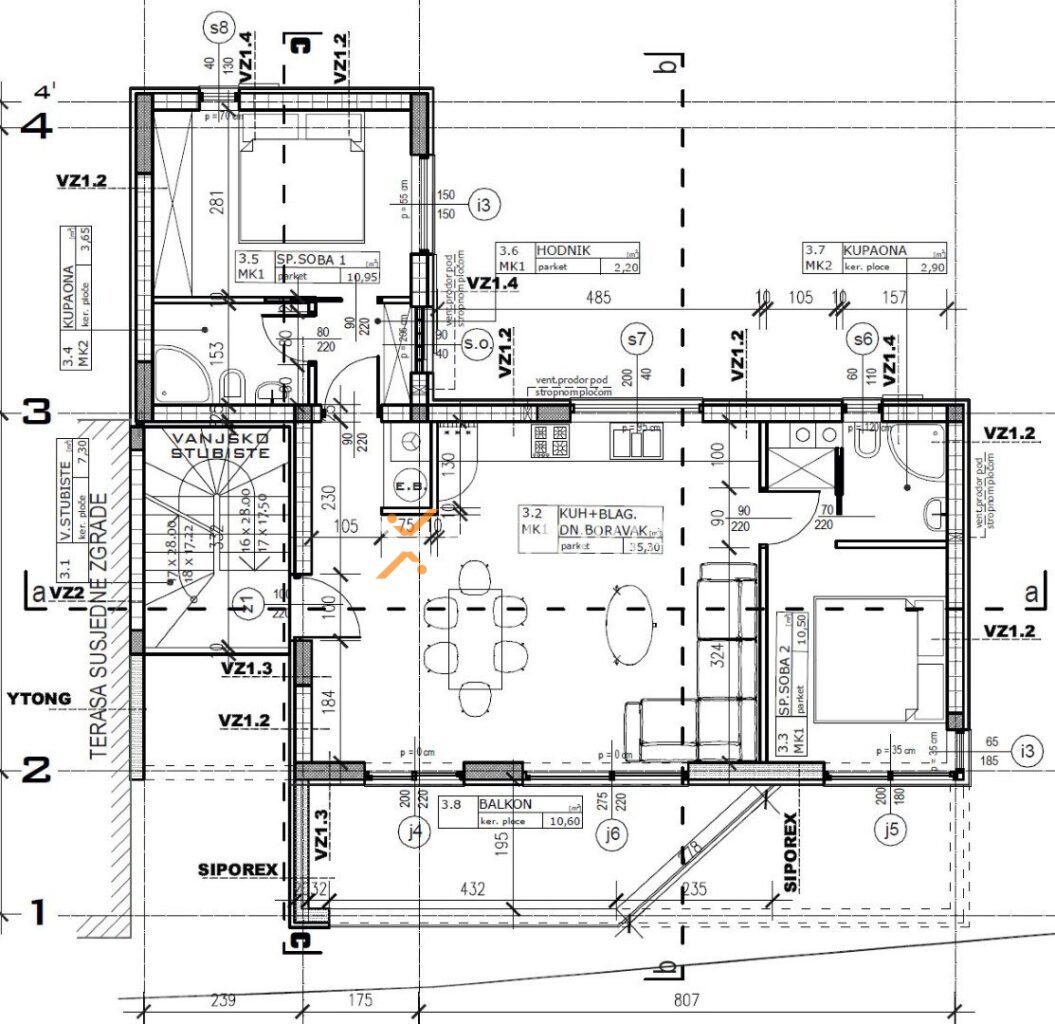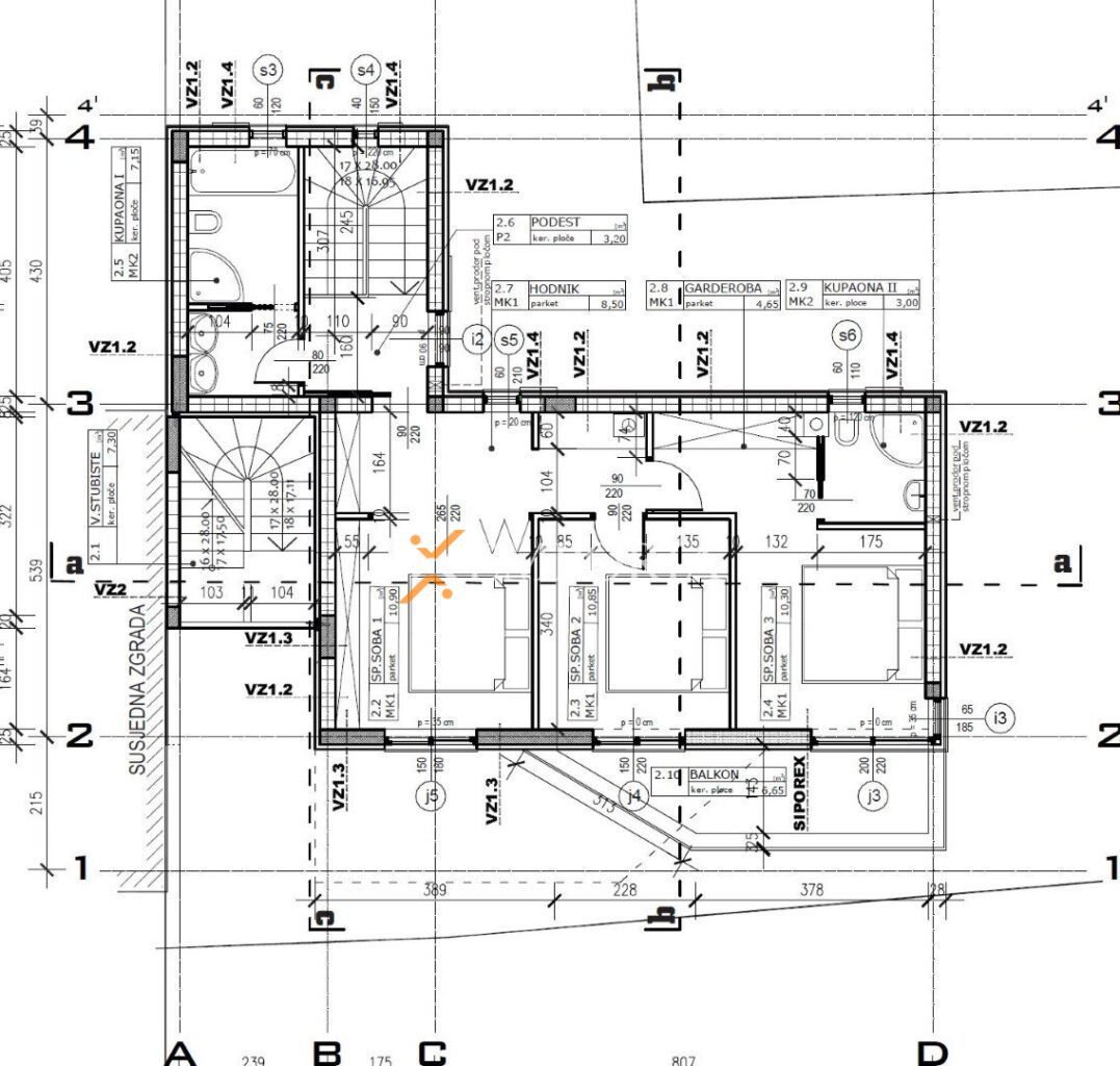 The total area of the house is 216,28 m2, and it is built on a plot of 301 m2.