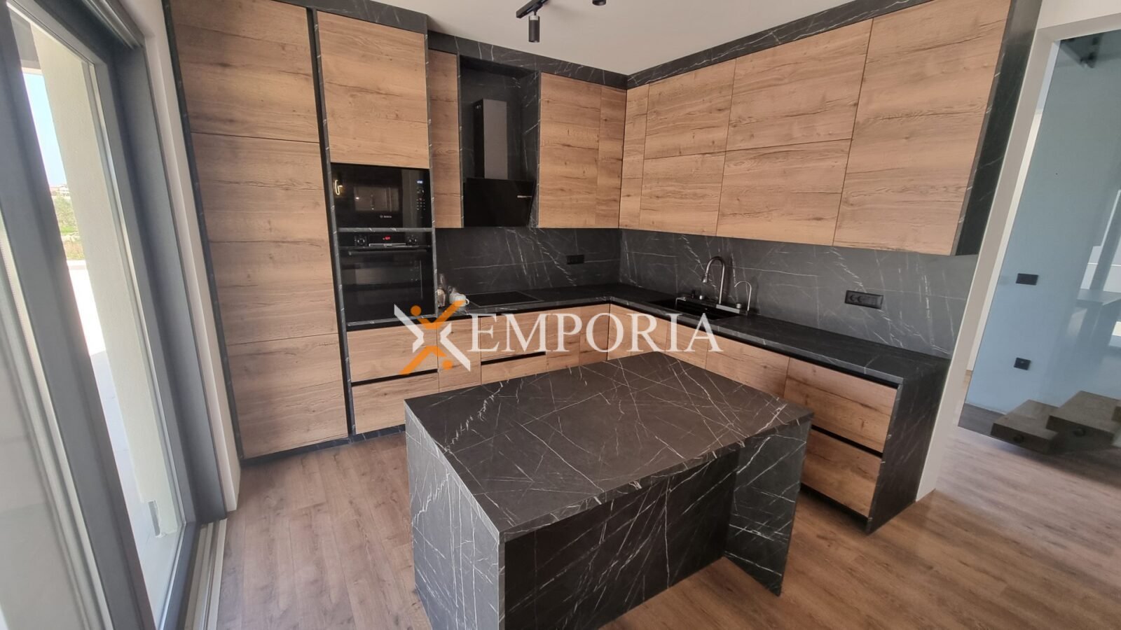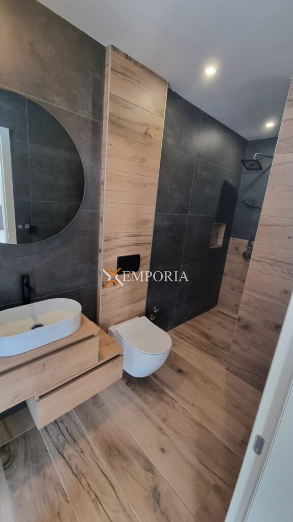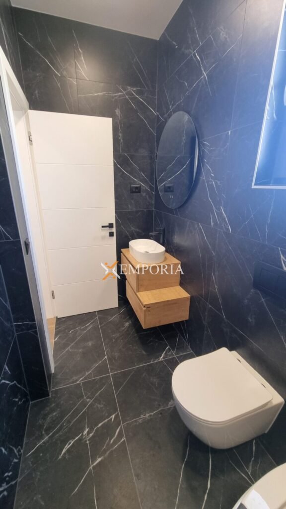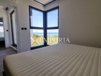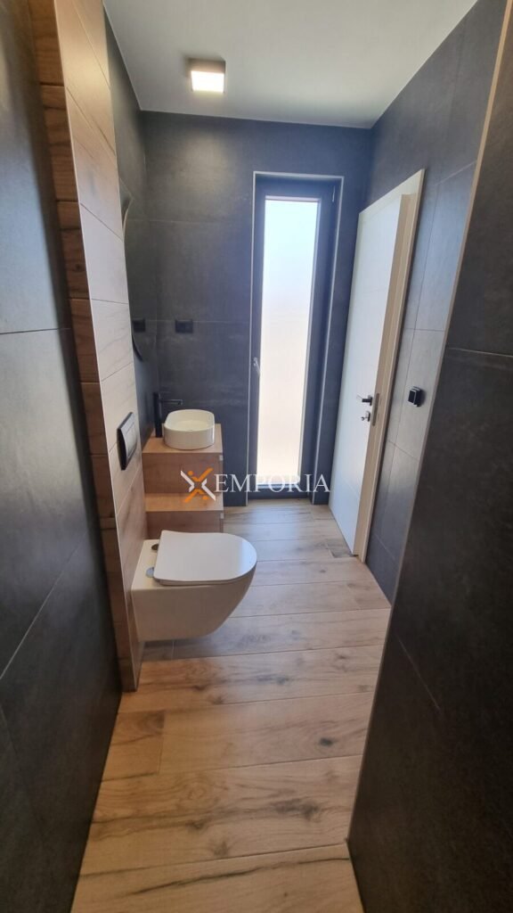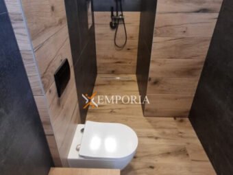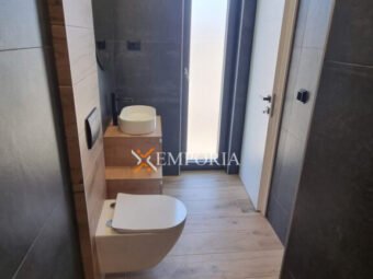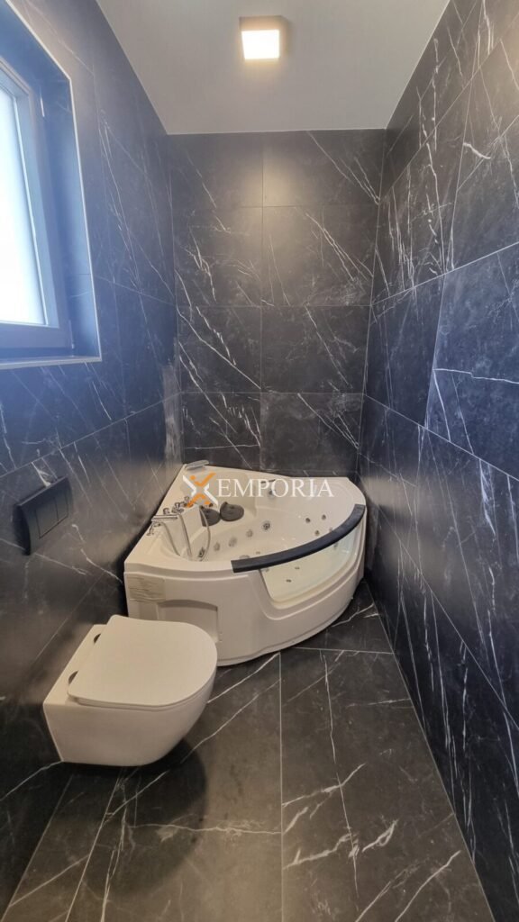 Construction was made with thermal brick block with thermal insulation of the facade 10 cm Styrofoam. Windows are PVC with three-layer glass and mosquito nets. Floor coverings are tiles and laminate. Furthermore, there is underfloor electric heating throughout the entire house. In addition, there are air conditioners in the living room and all bedrooms. Furthermore, there is a barbecue in the yard of the house. Additionally, the front door of the house is burglar-proof. The house is sold fully furnished.