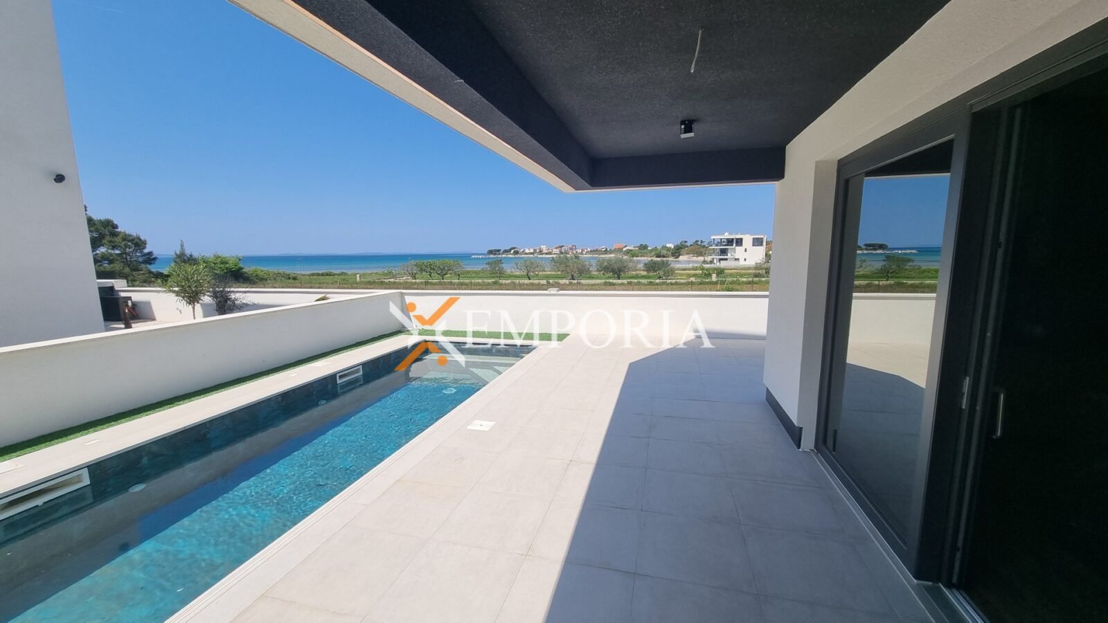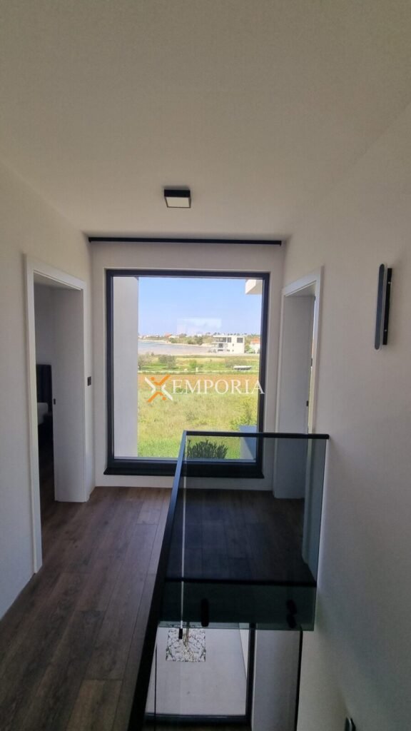 A wonderful house with a swimming pool in Privlaka is for sale. It is a modern new building. The house has an excellent view of the sea.