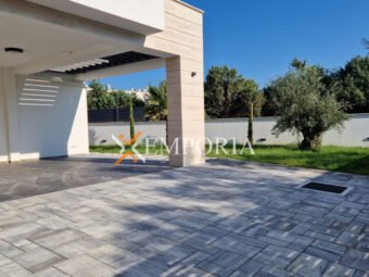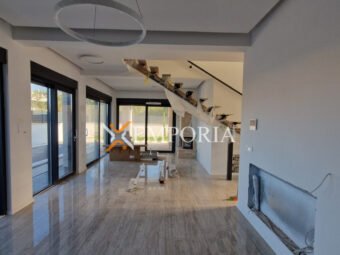 The construction was done with thermal brick blocks. Thermal insulation of the facade is made with 15 cm thick Styrofoam. The floor coverings are parquet and tiles. The windows are aluminum with electric shutters, three-layer glass and mosquito nets. Heating and cooling of the rooms will be done through a heat pump. The entire house is equipped with underfloor heating through a heat pump. In addition, the house has a chimney and a fireplace. Furthermore, the front door is burglar-proof.