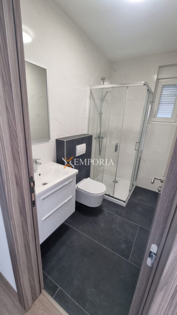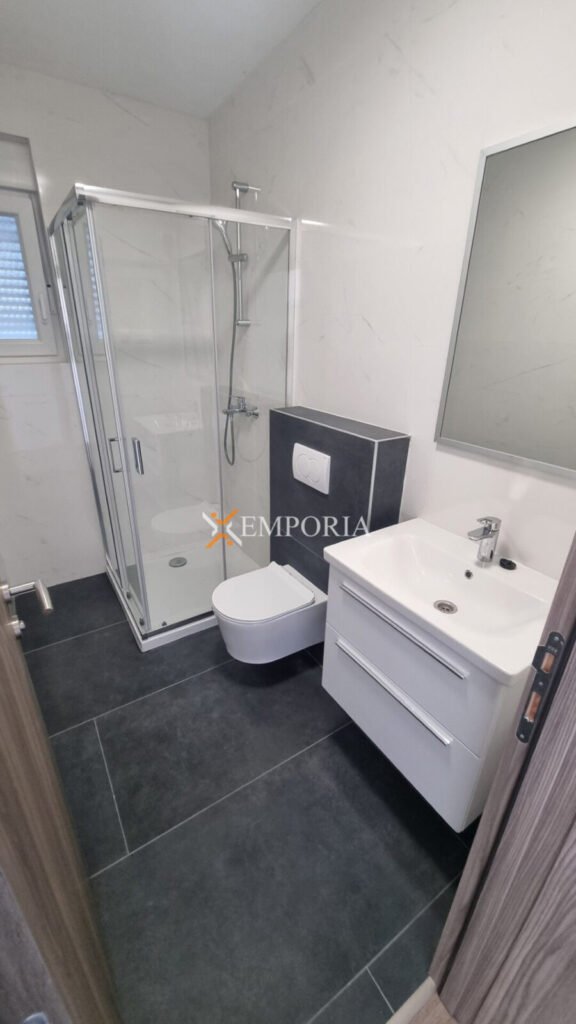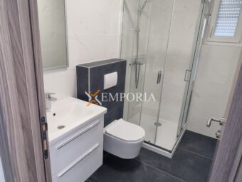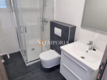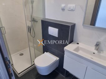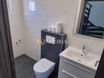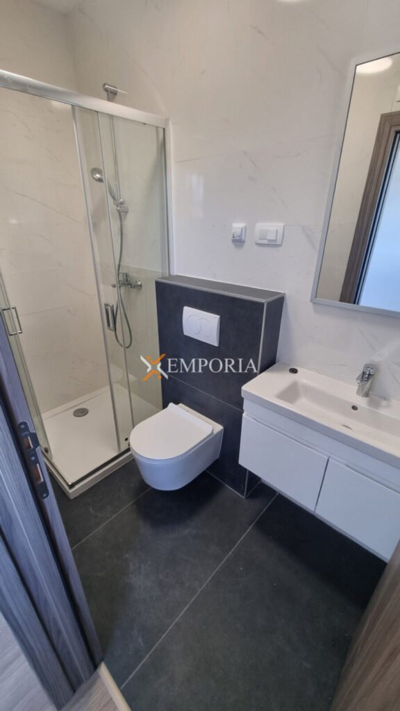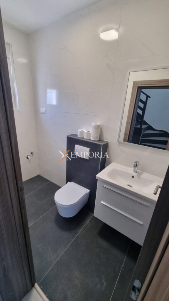 The house is built using brick thermal blocks. The facade is insulated with 10 cm thick styrofoam. The windows are PVC with shutters and mosquito nets. The flooring is tiled. Heating is underfloor heating in the living room, kitchen, and dining area, while in the bathrooms there are heaters above the doors. Air conditioning units are installed in the living room and bedrooms.