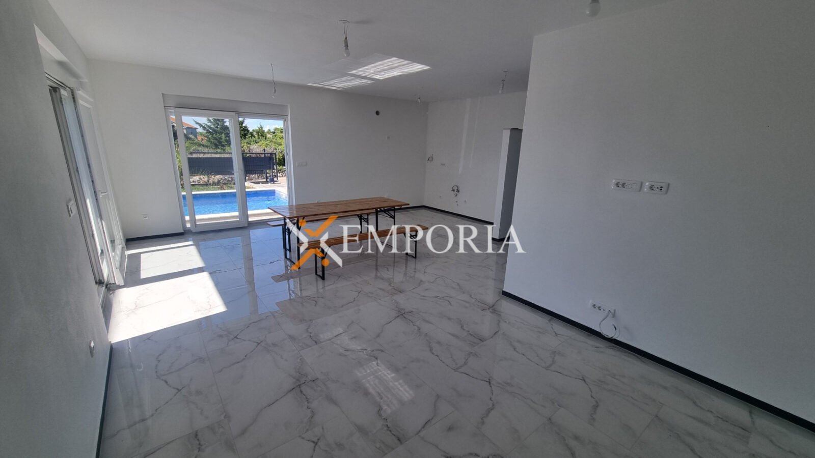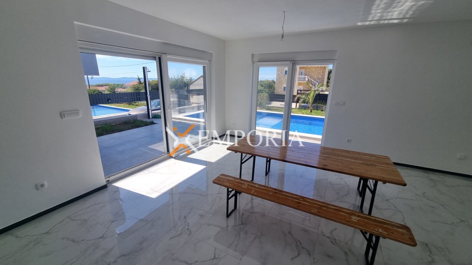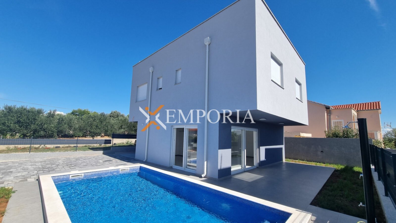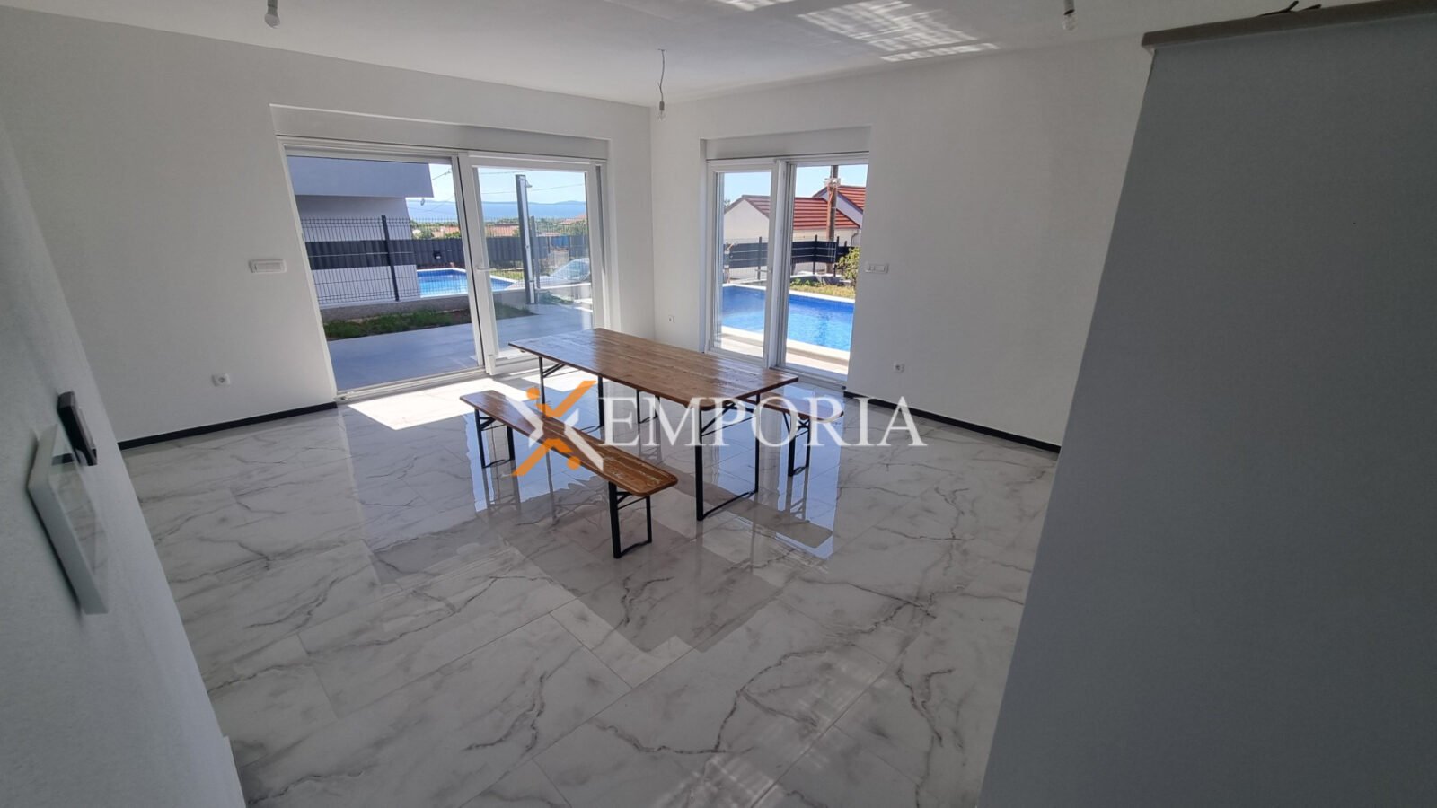 A house with a pool on the island of Vir is for sale. It is a modern new building.