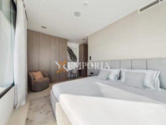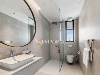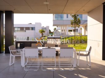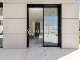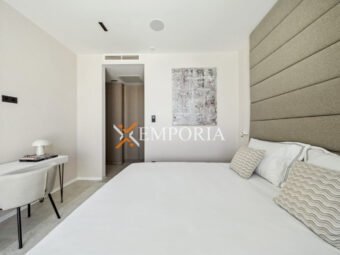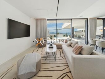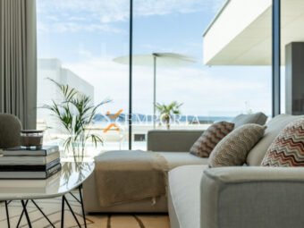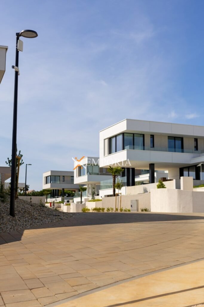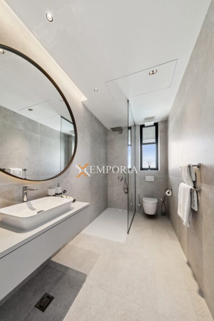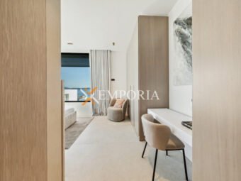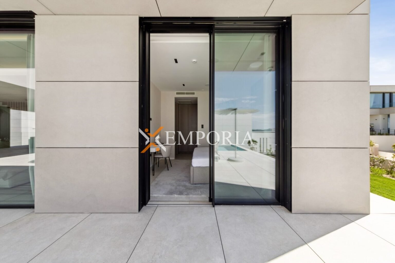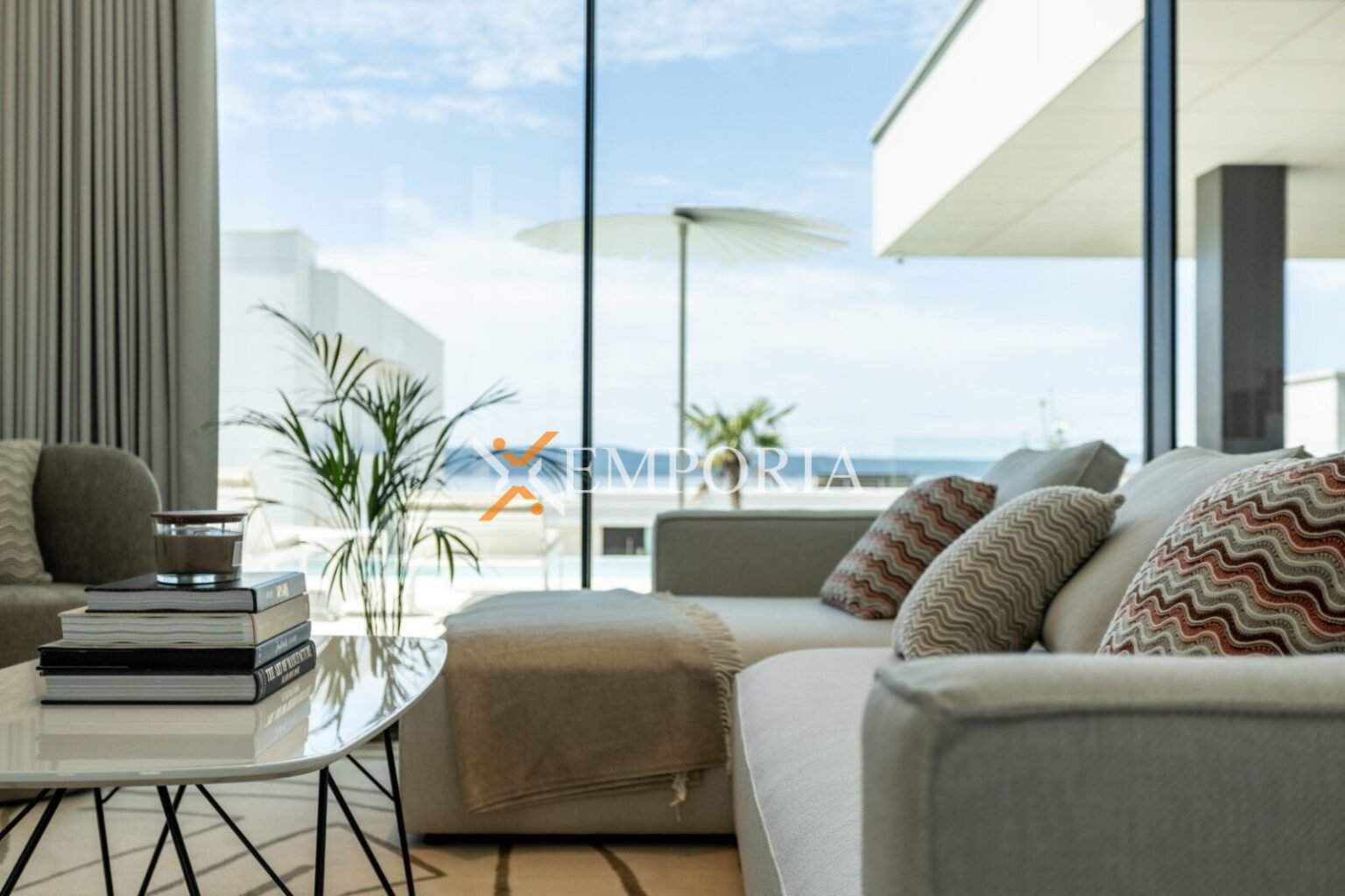 On the first floor (142,60 m2 gross) there is a hallway, three elegant bedrooms each with an en-suite bathroom and walk-in wardrobe, plus another partly covered terrace offering panoramic sea views.