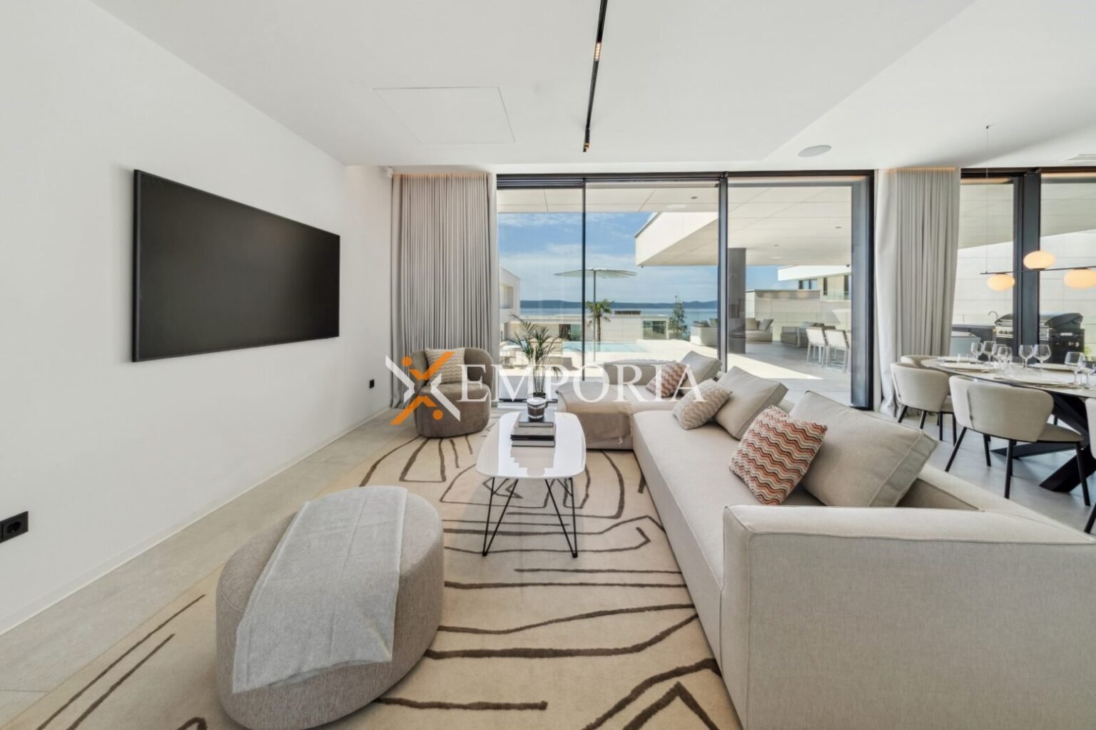 Located in the charming village of Ugljan on Ugljan Island, this luxury villa offers breathtaking sea views, top-tier amenities and modern comfort. Just 150 m from the sea and 2 km from the center, it is part of a 5-star resort that provides owners with access to tennis, basketball, handball and volleyball courts, two shared swimming pools and a variety of leisure and wellness facilities.