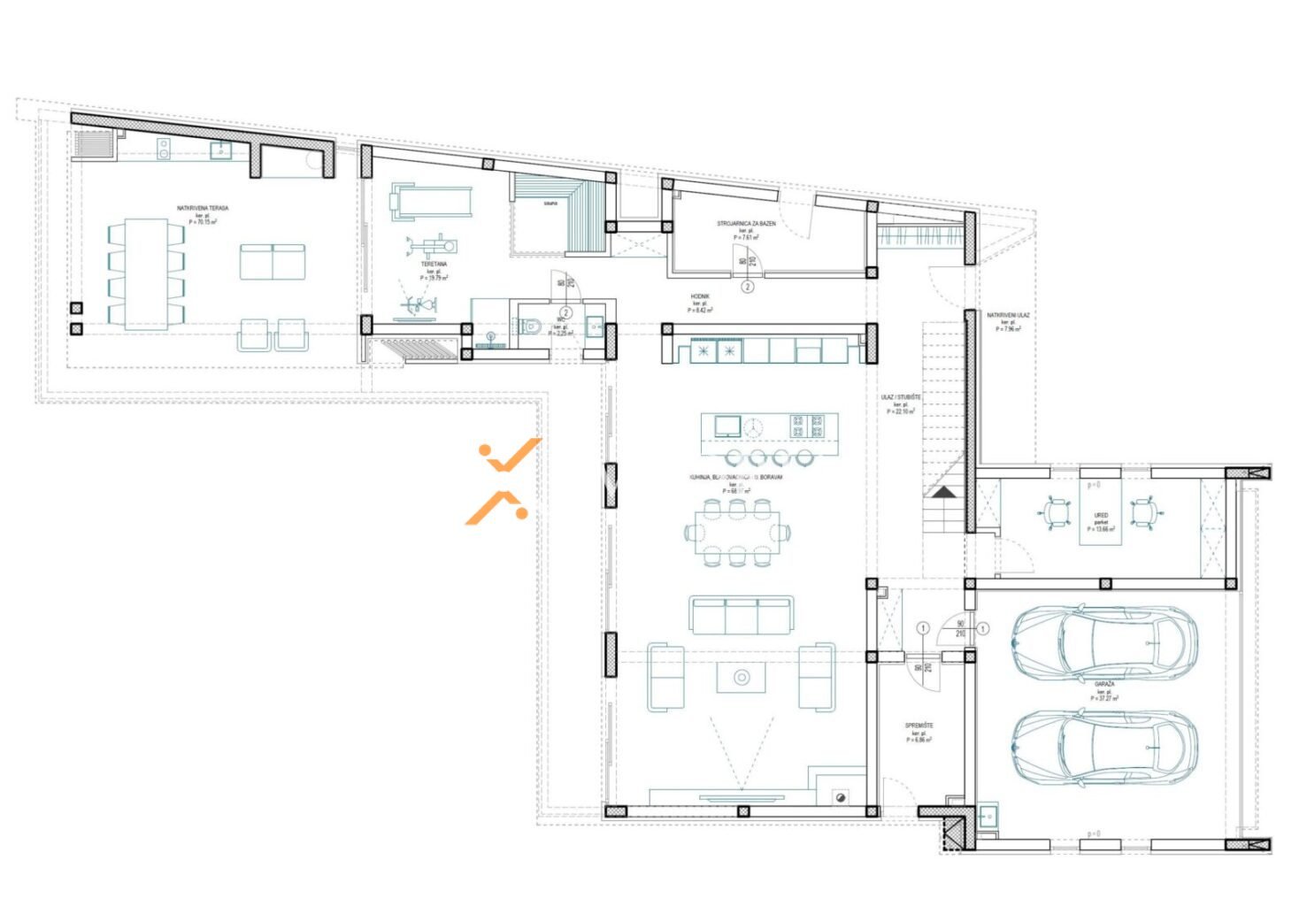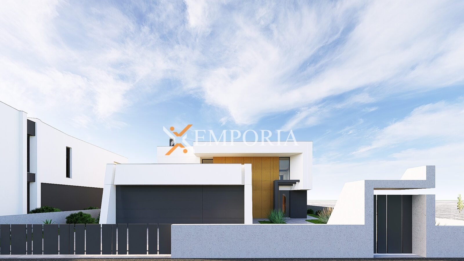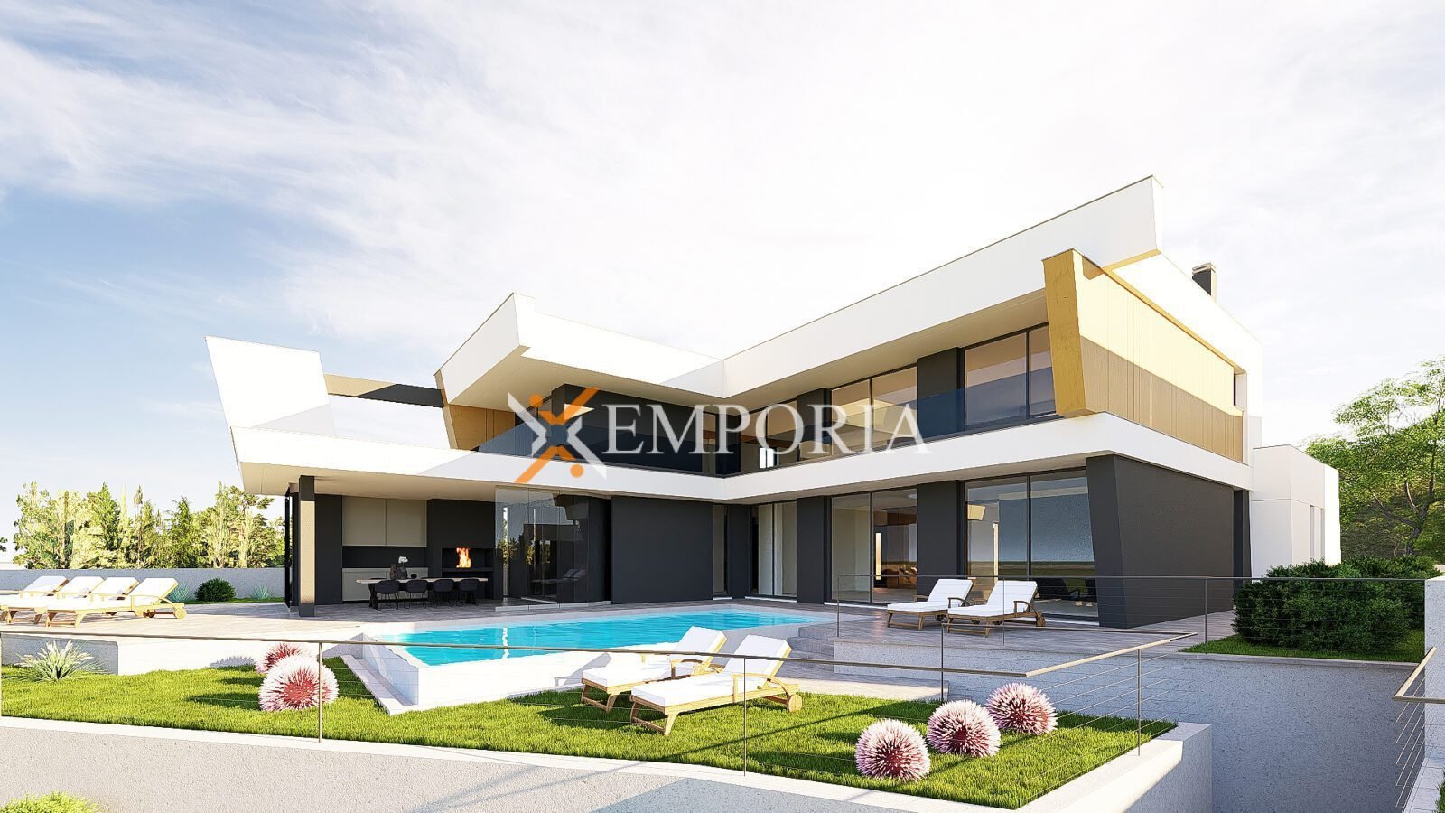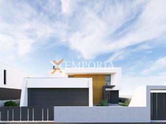 The villa stands on an 877 m² plot and includes a carefully designed and comfortable interior, a double garage, a large terrace, and an infinity pool, making up a total area of 529.48 m².