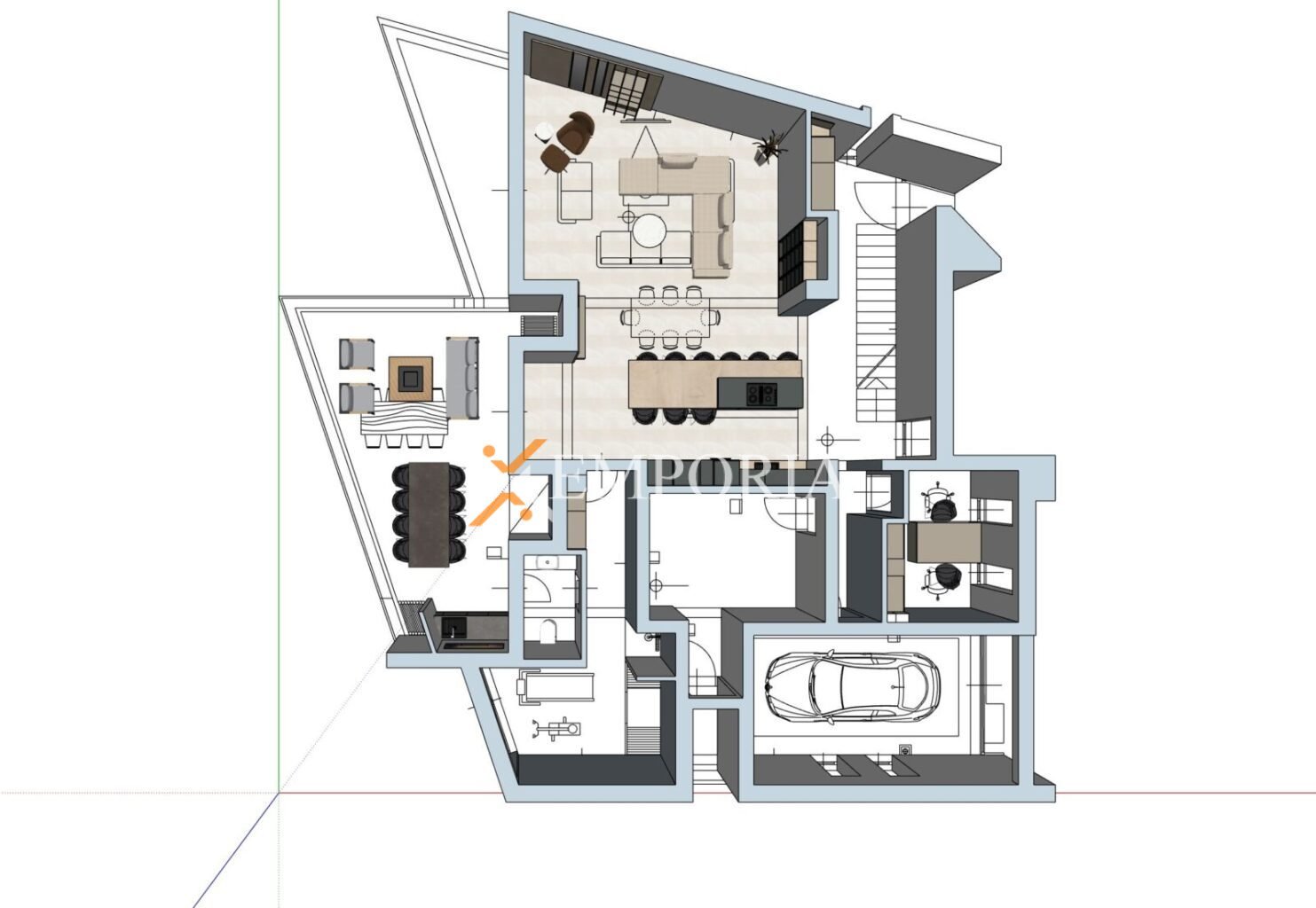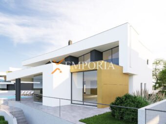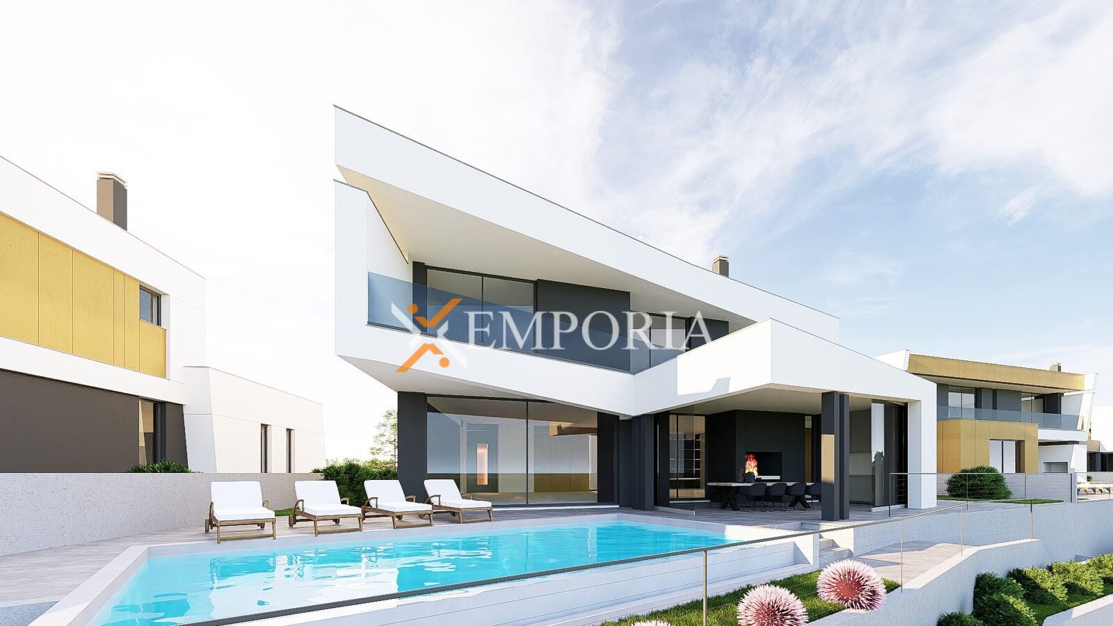 The villa stands on an 836 m² plot and includes a carefully designed and comfortable interior, a garage, a large terrace, and an infinity pool, making up a total area of 430.74 m².