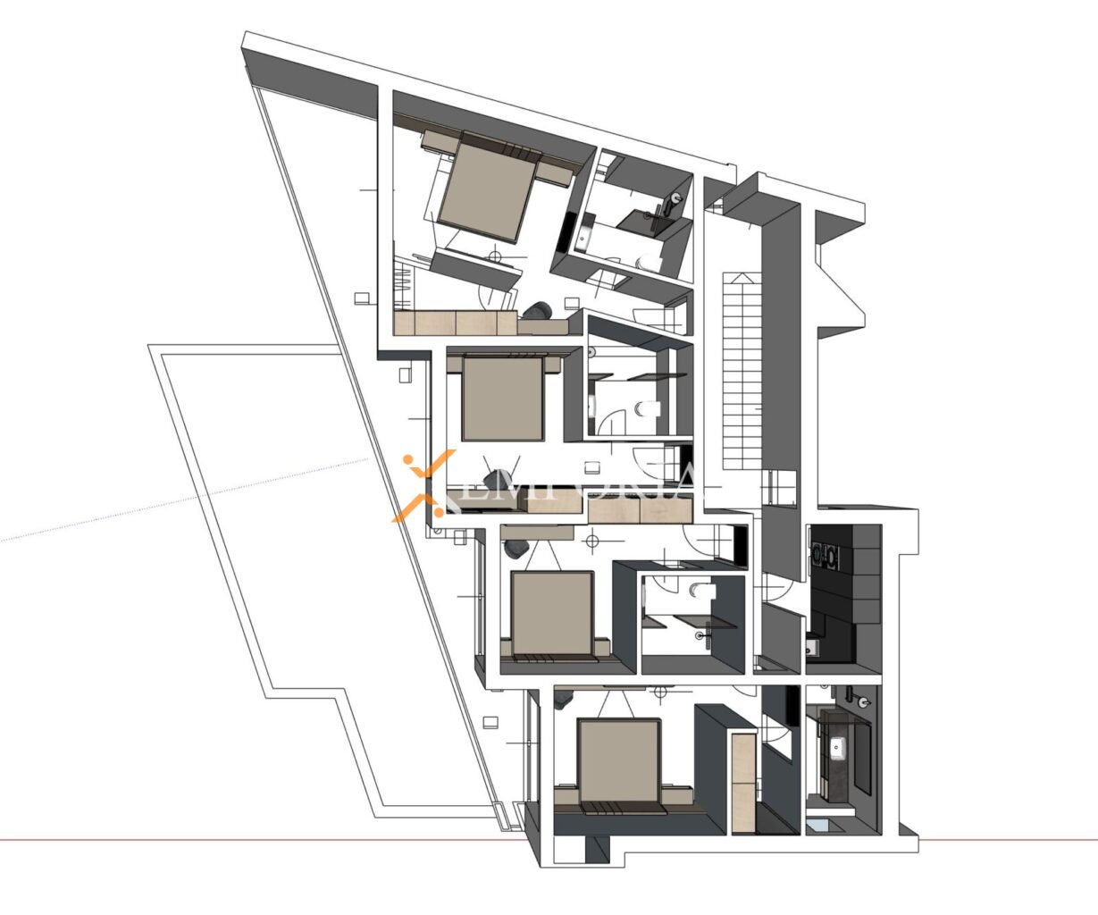 Outdoors, the property offers an uncovered terrace and an elegant infinity pool. The uncovered terrace measures 43.55 m², while the pool area extends over 37.40 m².