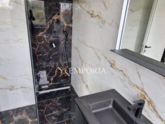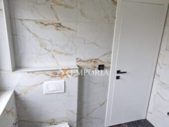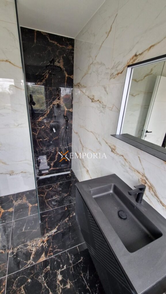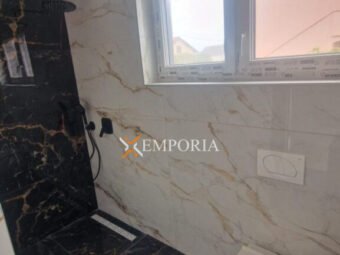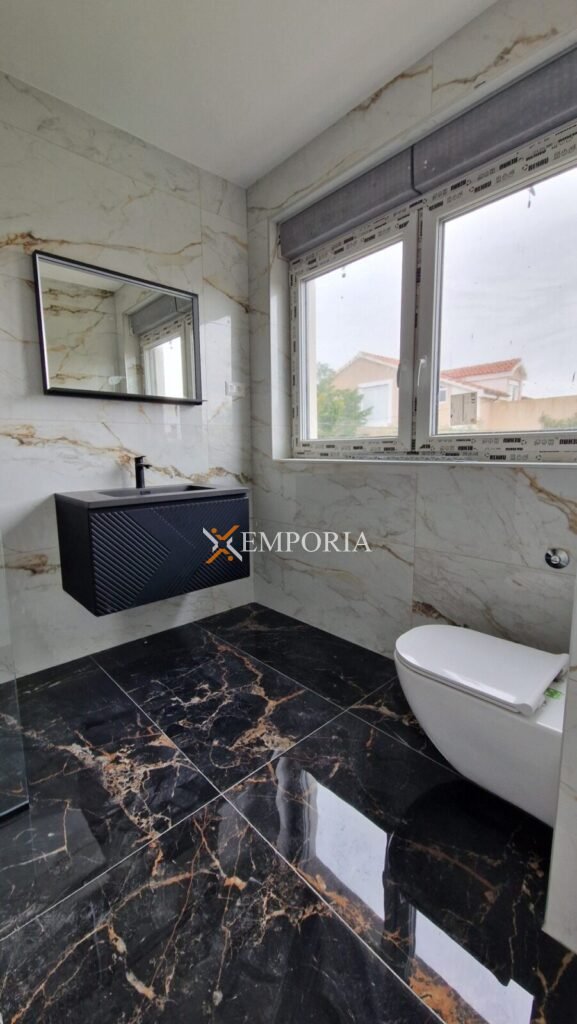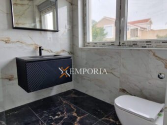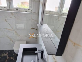 The house is built using insulated thermal clay blocks and has a 10 cm styrofoam façade. Windows are PVC with triple glazing, electric shutters, and insect screens. Flooring is a combination of tiles and laminate. Underfloor electric heating is installed throughout the house, and each bedroom and the living room has its own air conditioning unit (4 in total).