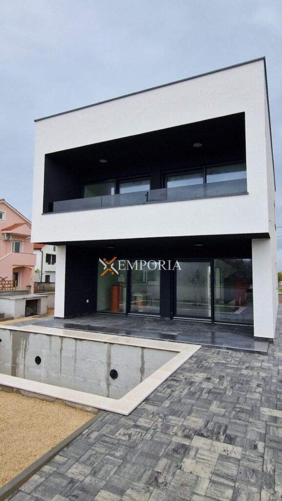 In Privlaka, just 330 m from the sea and 1.45 km from the town center, a modern newly built house with a pool is for sale. The total surface area is 184,65 m², and the house sits on a land plot of 318 m². Its layout and equipment make it suitable for year-round living or tourist rental.