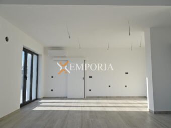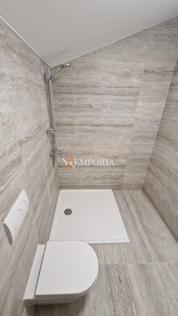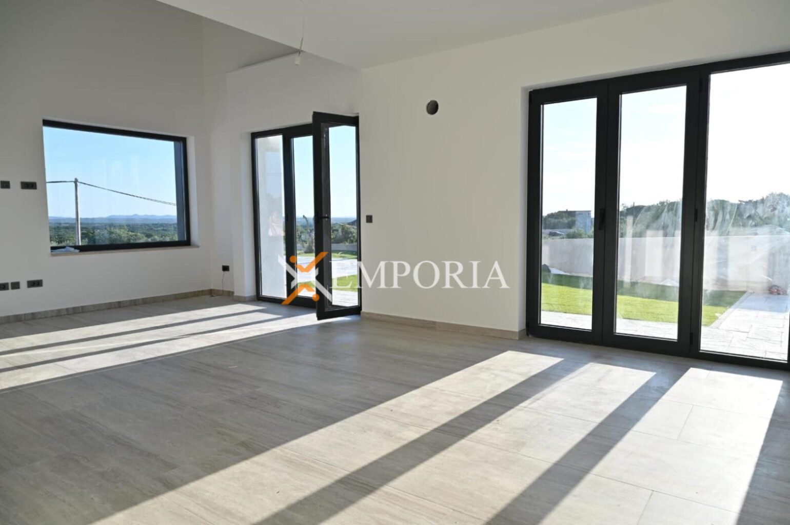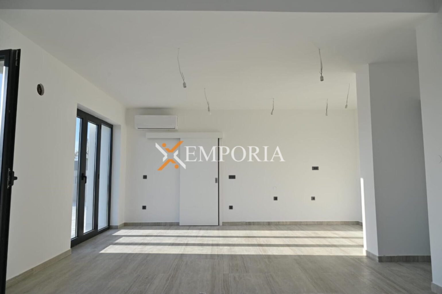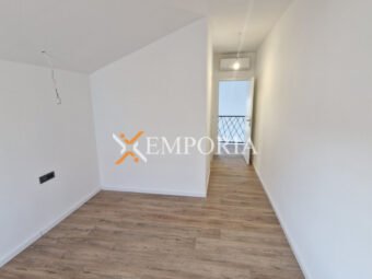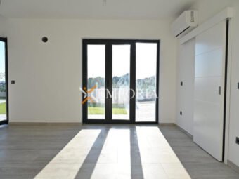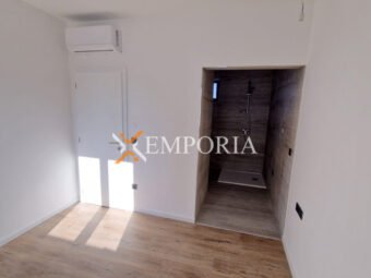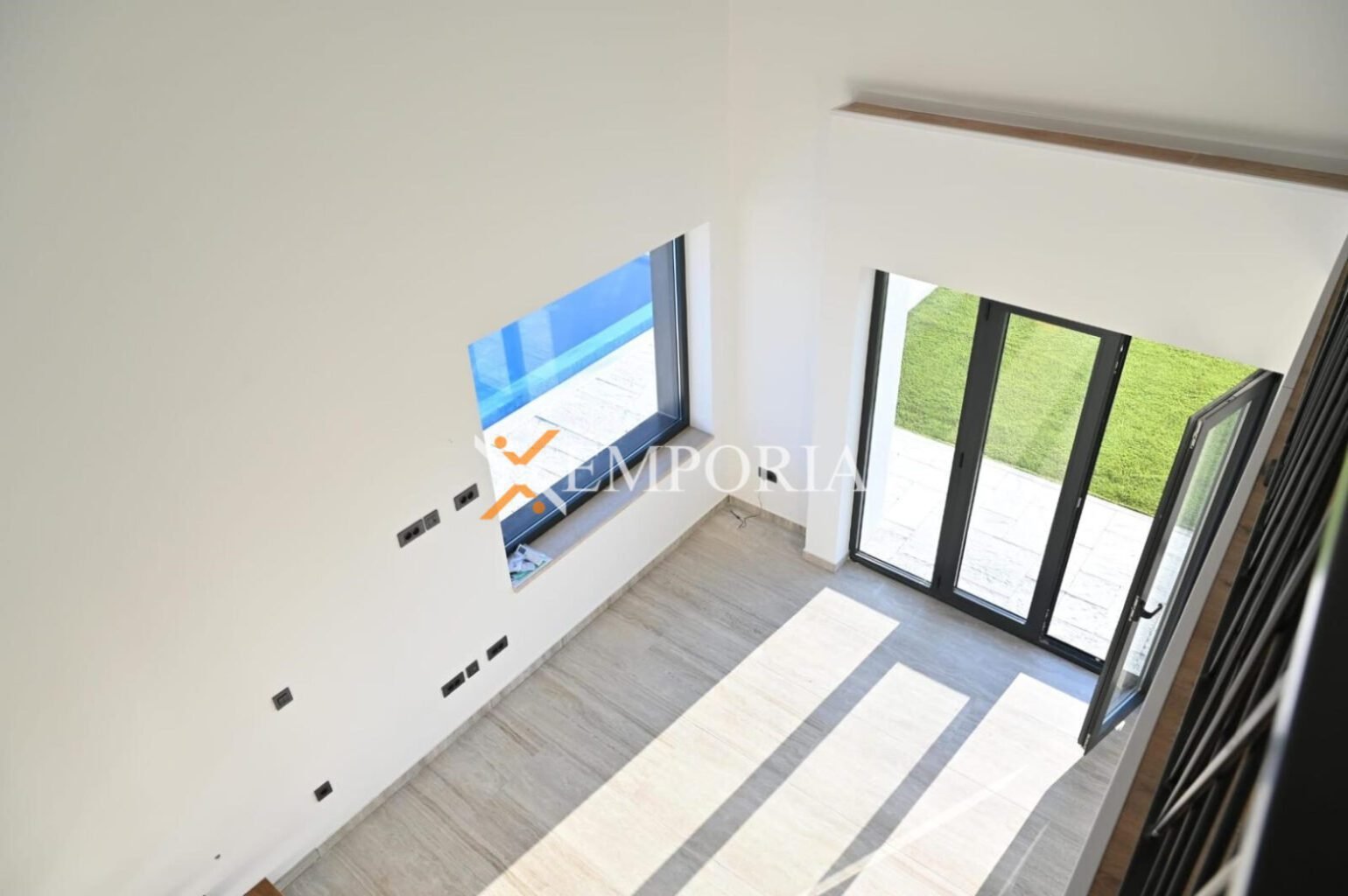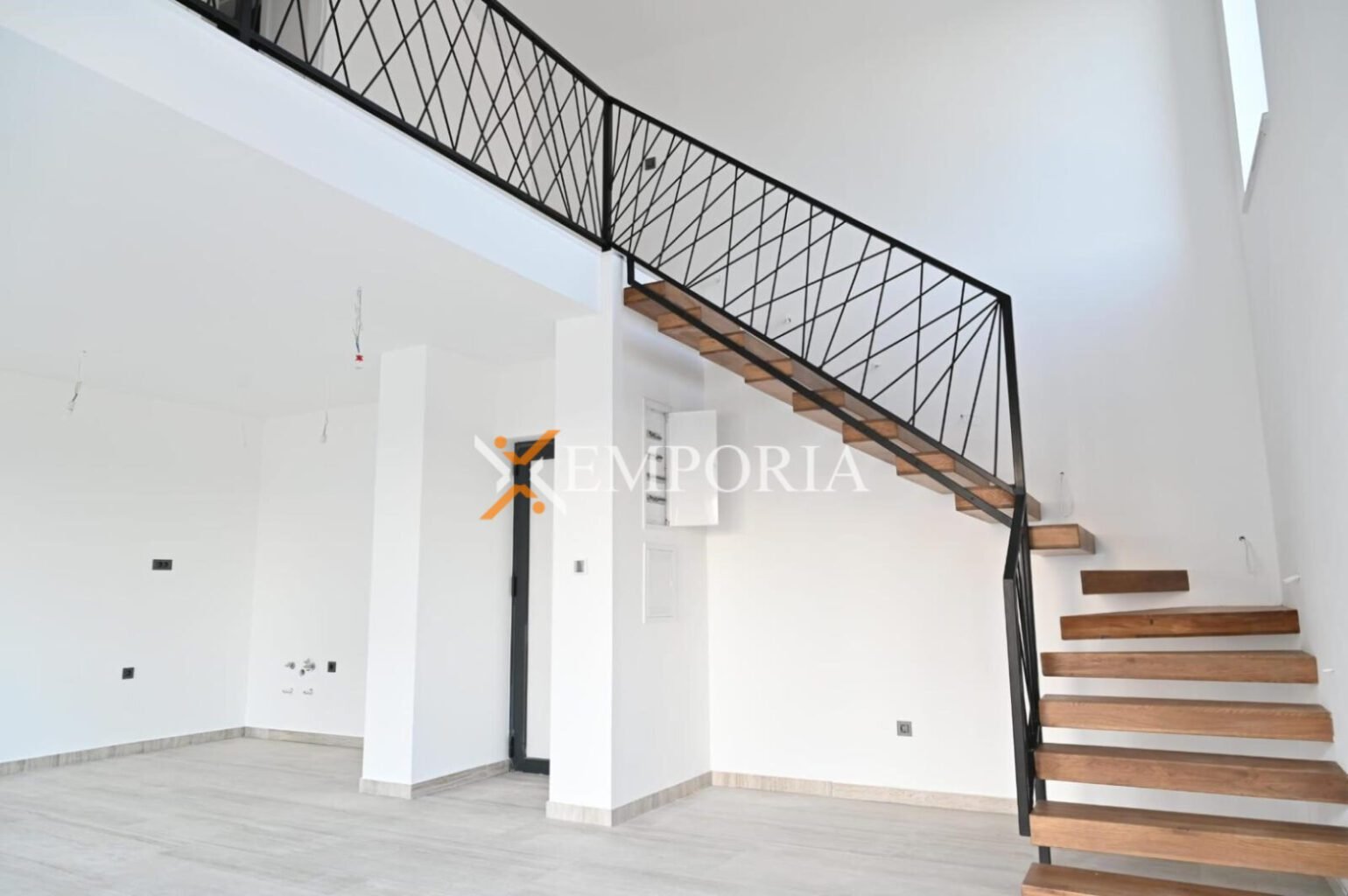 In the peaceful village of Visočane, Municipality of Poličnik, a modern newly built house with a pool is for sale, located just 6 km from the sea and 300 m from the village center. The house is spread over two floors with a carefully designed layout for comfortable living. The ground floor features an entrance hall, a bedroom with its own bathroom, a kitchen with dining and living area, an additional WC, and a laundry room. An internal staircase leads to the first floor, where there is a hallway and two bedrooms, each with its own bathroom. The net usable living area is 102,53 m², while the land size is 449 m². The exterior offers a beautifully landscaped garden, a 40 m² pool with foil lining and preparation for heating, and two parking spaces.