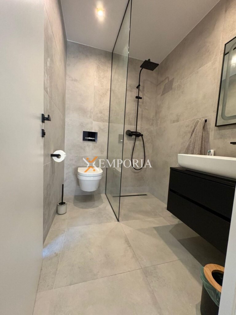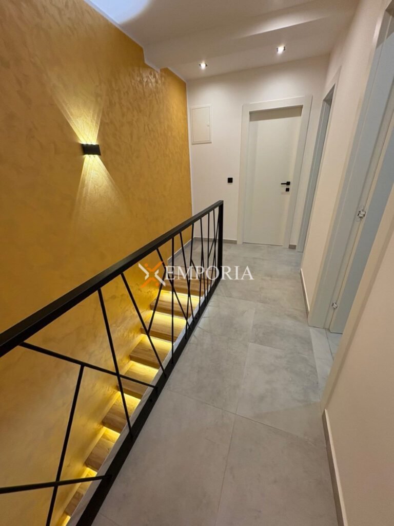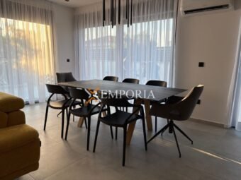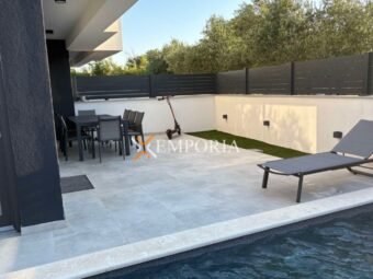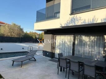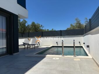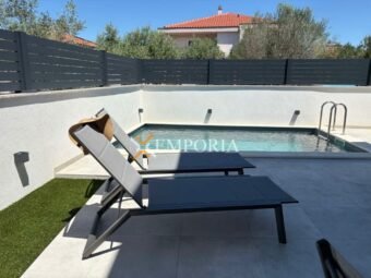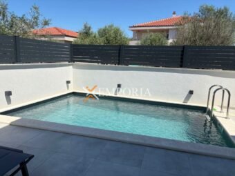For sale is a modern newly built house with a swimming pool in Zaton near Nin, located only 280 m from the sea and 760 m from the town center. The property extends over two floors and has a total living area of 119,23 m², while the overall area with the garden amounts to 124,13 m². A private pool and the peaceful location close to all amenities add special value to this house.