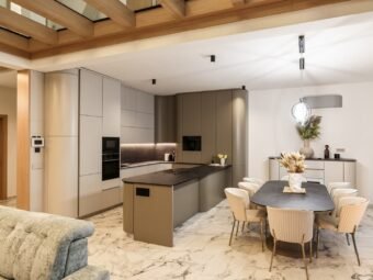 It features underfloor heating throughout using a water heat pump, and every room is equipped with air conditioning.