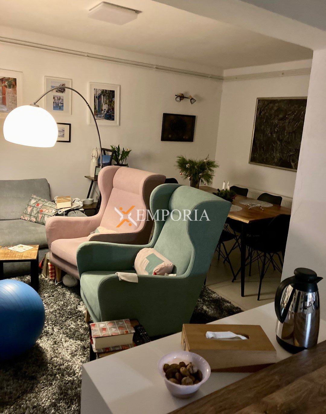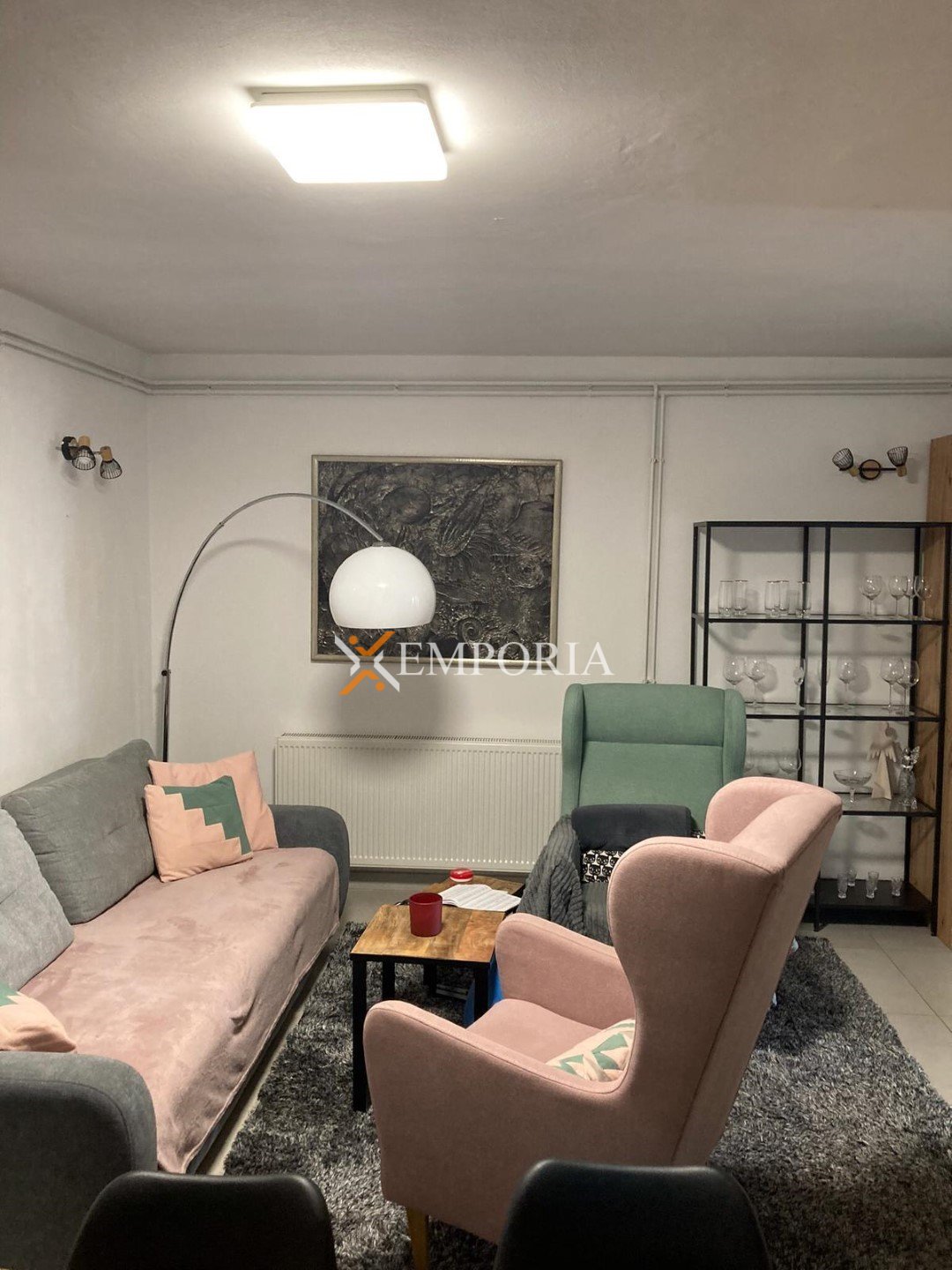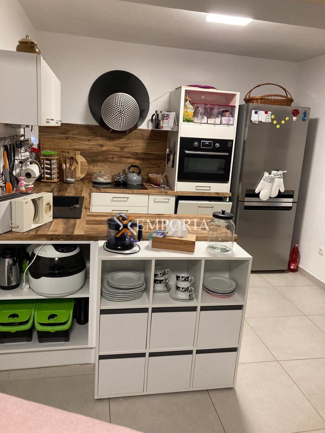 The house is sold fully furnished. Central heating is provided via a pellet system, while air conditioning is installed through four units located in the living room and bedrooms. The house is built using brick blocks and features PVC windows with shutters and mosquito screens. The façade is insulated with 10 cm Styrofoam. Floor coverings consist of tiles, and a chimney is also available.
