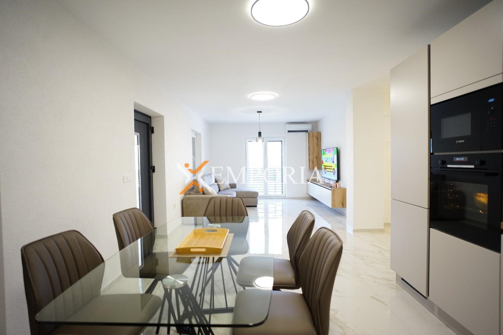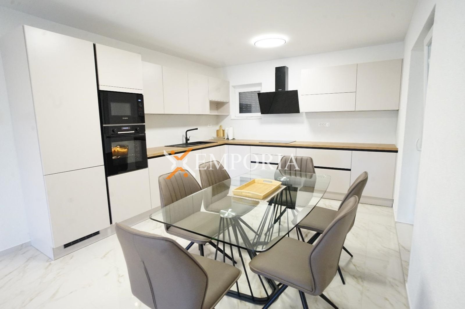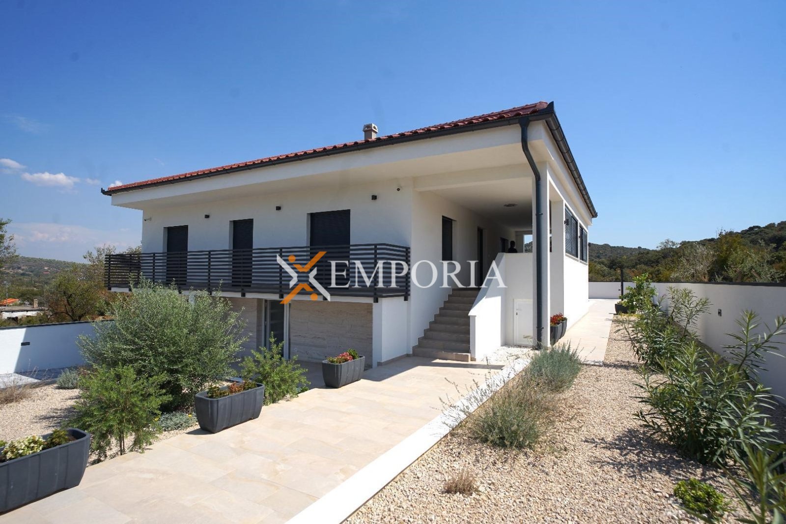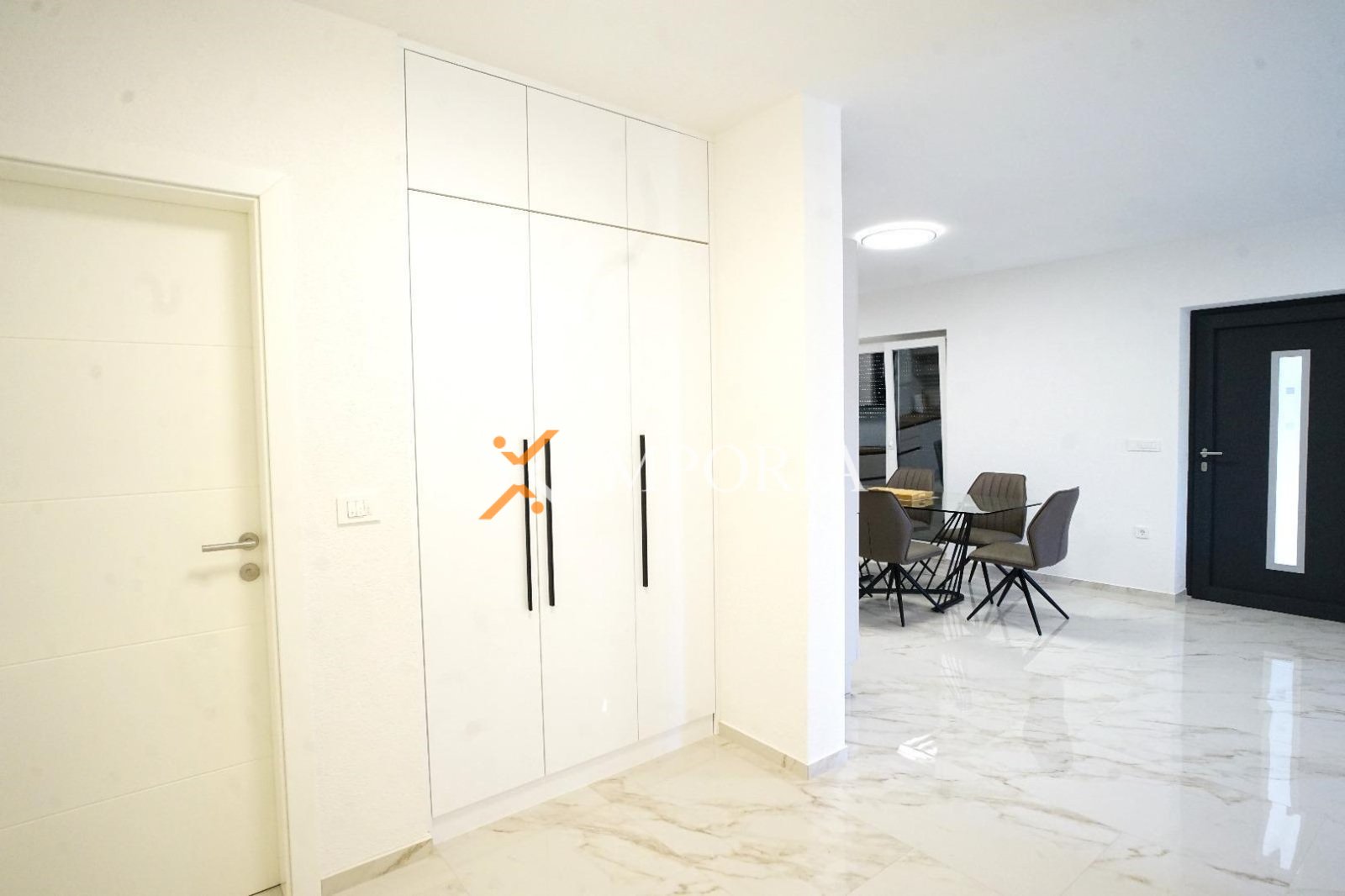 The house is sold furnished. It has 4 air conditioning units. It is built with thermal brick blocks, while the façade has 10 cm Styrofoam insulation. Windows are PVC with shutters, mosquito nets, and triple glazing. Floors are covered with tiles. The house has a chimney.