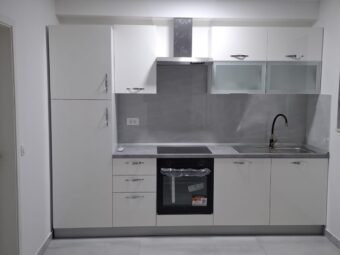 The kitchen is installed and included in the price. The house is built with brick thermal blocks. PVC windows with electric shutters and mosquito nets are installed. The facade is insulated with 10 cm of styrofoam. Floor coverings include tiles and laminate in the bedrooms.