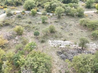 The property has direct access from a public asphalt road, while electricity and water connections are available next to the plot. The terrain has been cleared and is ready for development, and its regular shape allows easy planning of the future building.